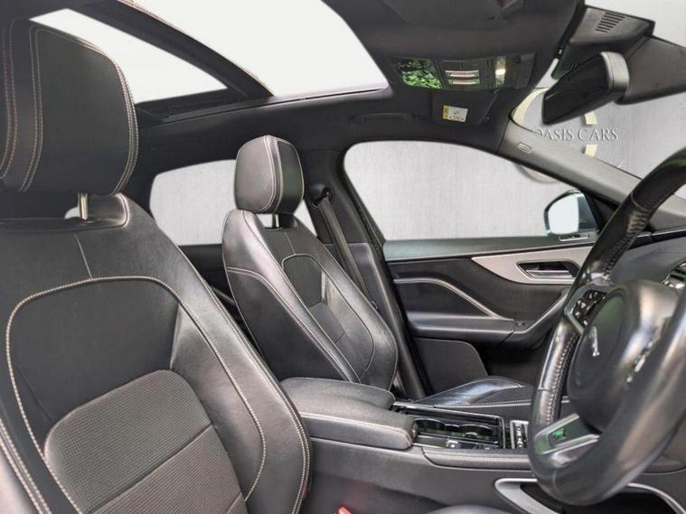 This 2017 Jaguar F-PACE D240 R-Sport boasts exceptionally low mileage for its age, having covered just 68, 000 miles. This impressive estate car features a powerful 2.0 litre diesel engine, paired with a smooth four wheel drive system, ensuring confident handling in all conditions. As a Euro 6 compliant vehicle, it meets stringent emission standards. The R-Sport trim level enhances its already sophisticated appeal, and youll appreciate the convenience of heated front seats and dual zone climate control, keeping you comfortable year round. Its Xenon headlights with distinctive LED signatures provide excellent visibility, while the dual tailpipes with a 75mm finish add a touch of sporty elegance. The Jaguar F-PACE D240 R-Sport offers a compelling blend of performance and practicality. Its acceleration from 0 to 60 miles per hour in just 6.7 seconds demonstrates its dynamic capability, outperforming many similar vehicles. Furthermore, its impressive fuel economy of 49 miles per gallon highlights its efficiency for a vehicle of this calibre. With a substantial towing weight of 2400 kg, it is well equipped for various needs, and the generous boot space ensures you have ample room for luggage or shopping. The distinctive 25d AWD badge subtly signifies its capable drivetrain.