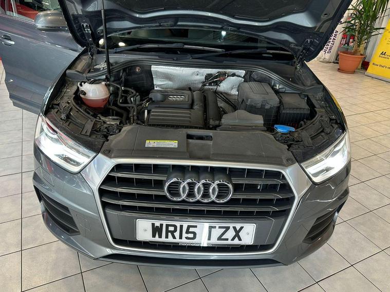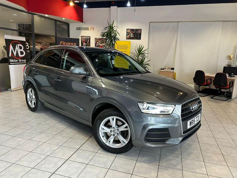 Basic Information, Make/Model: Audi Q3 Trim: SE, Engine: 1.4 TFSI CoD (Cylinder on Demand), Fuel: Petrol, Transmission: Automatic, Year: 2015, Color: Grey, Owners: 3 previous, Body Style: Compact SUV, Engine & Performance, Power: 150 PS (148 bhp), 060 mph: ~8.9 seconds, Top Speed: ~126 mph, Fuel Economy: ~4852 mpg (claimed, combined), CO2 Emissions: ~128137 g/km, Drivetrain: Front-wheel drive (most 1.4 models are FWD), Cylinder-on-Demand (CoD): This tech shuts off two cylinders under light load to improve fuel efficiency without affecting performance. SE Trim Features (Standard for 2015), Interior:, Cloth upholstery, Manual air conditioning (dual-zone climate optional), Leather-trimmed steering wheel, Infotainment:, Audi MMI radio with DAB, Bluetooth phone connectivity, 6.5 retractable display, Wheels: 17 alloy wheels, Other:, Rear parking sensors, ESC and traction control, ISOFIX child seat mounts, Start/stop technology, The specification and technical details in this advert are pulled through from a third-party source. MB Motor Group therefore cannot guarantee or warrant the accuracy of this information. We therefore kindly ask customers to check the specification of their chosen car to ensure it meets all of their requirements prior to purchase. Important Notice: Beware of Scammers, We want to ensure the security and trust of all our customers. Please note that we do not accept payments through any personal accounts or payment links. If you receive any communication asking for payment via these methods, it is not from us and should be reported immediately. For legitimate transactions, please contact us directly using the official communication channels provided on this website. Stay safe, and thank you for trusting us!