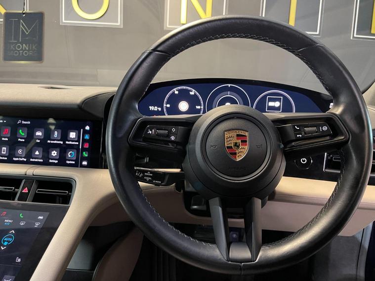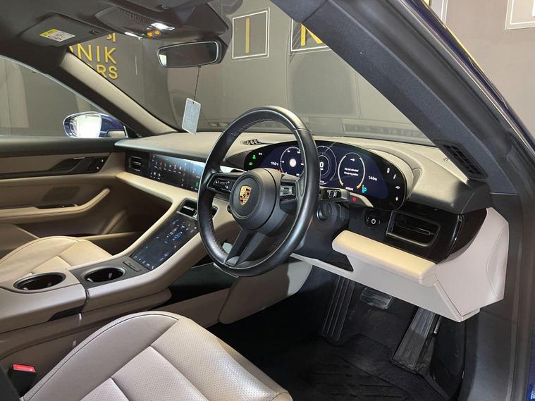 Ikonik Motors are pleased to present the stunning Porsche Taycan 4S Performance, a remarkable blend of electrifying performance, cutting-edge technology, and unmistakable Porsche design. Finished in an eye-catching deep metallic blue, this all-electric sports saloon commands attention from every angle. The sculpted bodywork, aggressive front fascia, and signature Porsche LED headlights make an immediate statement of intent, while the sleek aerodynamic lines hint at the cars dynamic capabilities. Step inside and youre greeted by a luxurious and futuristic interior, with high-quality materials and an intuitive digital cockpit that places control at your fingertips. The Taycan 4S offers exhilarating acceleration and seamless power delivery, thanks to its dual-motor setup and 79.2kWh Performance battery. It delivers a refined yet thrilling driving experience with impressive range and quick charging capabilities, making it equally suited for daily commutes or weekend getaways.