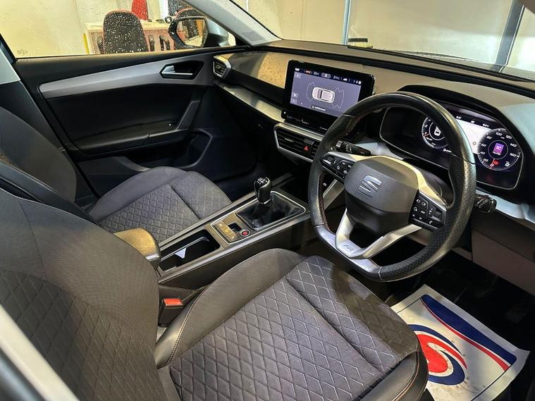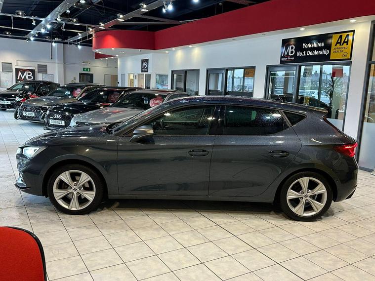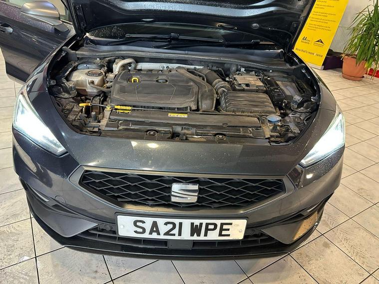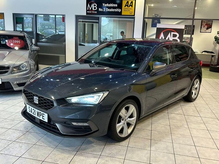 SEAT Leon 1.5 TSI EVO FR (2021) Professional Overview, Vehicle Summary, Make & Model: SEAT Leon, Variant: 1.5 TSI EVO FR, Year: 2021, Fuel Type: Petrol, Transmission: 6-speed Manual, Colour: Grey (Magnetic Grey Metallic or equivalent), Body Style: 5-door Hatchback, Owners: [Not specified can be added if needed], Key Features & Specifications, Performance & Efficiency, Engine: 1.5-litre TSI EVO 4-cylinder turbocharged petrol, Power Output: 150 hp (110 kW), Torque: 250 Nm, Transmission: 6-speed manual gearbox, Top Speed: ~137 mph (220 km/h), Acceleration (060 mph): ~8.4 seconds, Fuel Economy: Up to 51.4 mpg (combined WLTP), CO Emissions: ~126 g/km, Exterior Features, FR Trim Level: Sportier design enhancements including, Full LED headlights and rear lights, FR-specific bumpers and honeycomb grille, Twin exhaust finishers, Wheels: 17-inch Dynamic alloy wheels (18-inch optional), Mirrors: Electrically adjustable, heated, and folding, Tinted Windows: Rear privacy glass, Body Finish: Gloss black accents and sculpted side skirts, Interior & Comfort, Seats: Sports seats with red stitching and FR branding, Upholstery: Premium cloth (Alcantara or leather optional), Steering Wheel: Flat-bottom leather FR multifunction steering wheel, Climate Control: 3-zone digital climate control, Ambient Lighting: Customisable LED ambient cabin lighting, Boot Capacity: 380 litres (up to 1, 210 litres with rear seats folded), Technology & Infotainment, Touchscreen Display: 10-inch SEAT Digital Cockpit with gesture control, Navigation: SEAT Connect with real-time traffic and map updates, Smartphone Integration:, Wireless Apple CarPlay, Android Auto (wired or wireless), Connectivity: Wireless phone charger, USB-C ports, Bluetooth, Voice Control: Natural speech recognition via infotainment system, Driver Assistance & Safety, Front & Rear Parking Sensors, Rear View Camera (optional), Adaptive Cruise Control (ACC), Lane Keep Assist, Forward Collision Warning with Automatic Emergency Braking, Tiredness Recognition System, Traffic Sign Recognition, Airbags: Front, side, curtain, and drivers knee airbag, ISOFIX: Child seat anchor points on outer rear seats, Professional Remarks, The 2021 SEAT Leon 1.5 TSI EVO FR blends Spanish flair with Volkswagen Group engineering, offering a sporty driving experience and modern tech in a stylish hatchback. The 150hp TSI engine delivers lively performance with excellent fuel efficiency, while the FR trim adds a dynamic edge inside and out. A fantastic choice for drivers who want engaging performance, sleek design, and everyday usability all at a great value compared to German rivals. The specification and technical details in this advert are pulled through from a third-party source. MB Motor Group therefore cannot guarantee or warrant the accuracy of this information. We therefore kindly ask customers to check the specification of their chosen car to ensure it meets all of their requirements prior to purchase.
