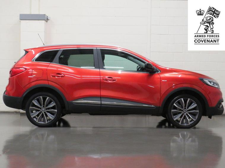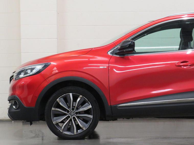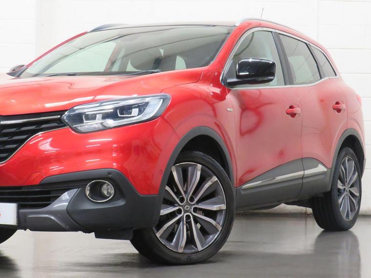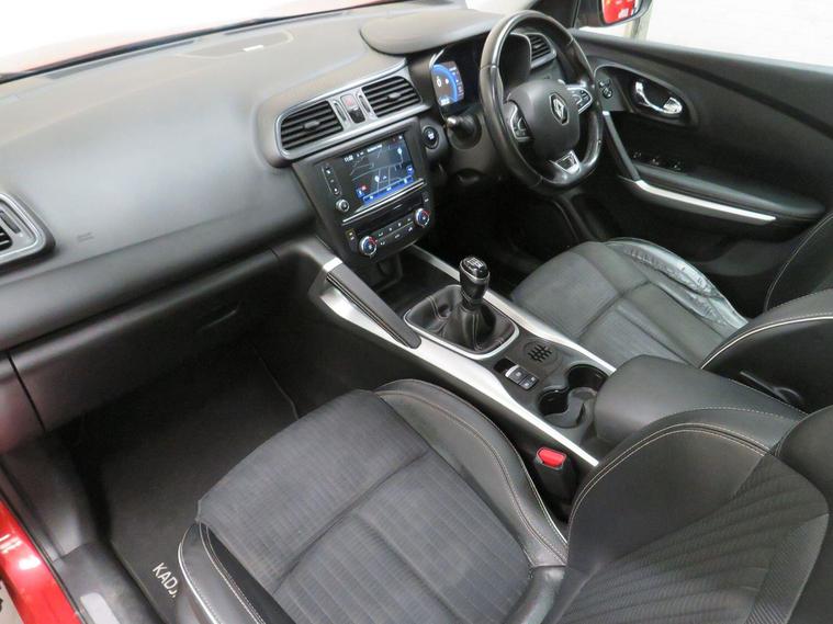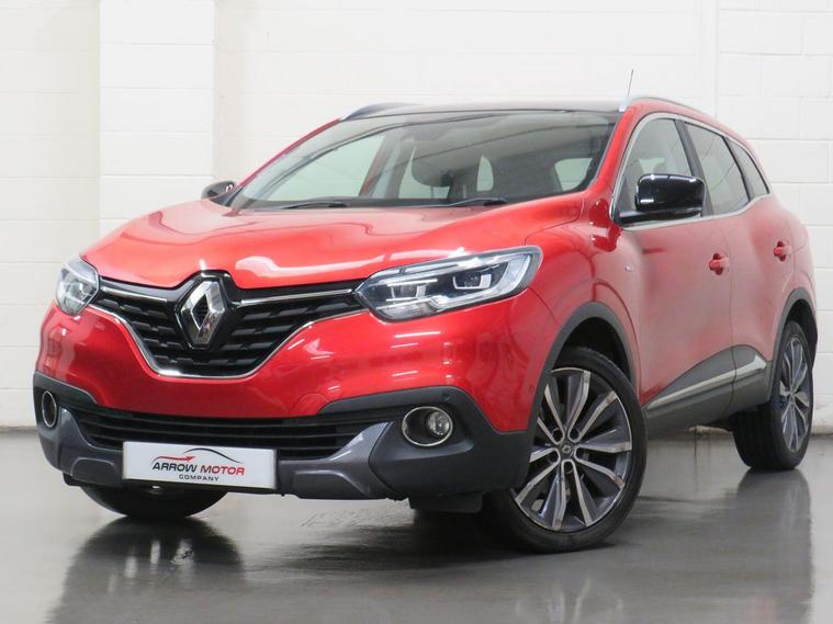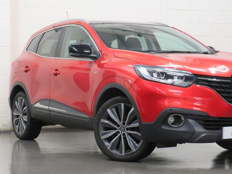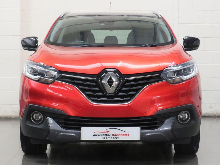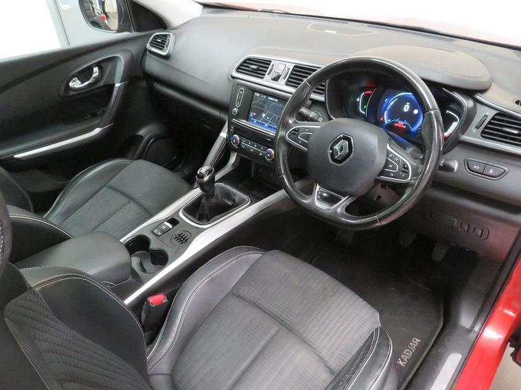 Arrow Motor Company are pleased to present this fantastic, Renault Kadjar Signature Nav finished in the stunning Metallic Flame Red Paintwork, with Partial Black Leather Interior. Equipped with Renaults 1.5-Litre Diesel engine producing 108bhp, whilst providing the most economical of drivers with an incredible 72.4mpg, with potential to rise to 74.3mpg in Extra-Urban environments. This Particular Example includes a (FSH) Full Service History and is only 20 Tax. This vehicle also benefits from the following impressive list of features below. , . Interior Features, 7 Inch Touch Screen Digital Display | Full Panoramic Sun Roof with Satellite Navigation System | 360 Ultrasonic Parking Sensors Display | Rear Parking Camera | Bose Bass-Reflex Surround Sound Speaker System | Bluetooth Connectivity | Full Digital Cockpit Screen Display | FM/AM/DR Radio | Dual Zone Climate Control with Display and Air Conditioning | Air Quality Refreshing System | Easy Park Assist with Parallel, Bay and Angled Parking Assist | Lane Departure Warning System | Blind Spot Alert | Eco Mode | Eco Stop/Start System | 12v Port | AUX Port | 2x USB Port | Driving Eco2 Trip Computer with Drive Score Tracking | Automatic Headlight Switch | Front and Rear Electric Window Controls | Electrically Adjustable Wing Mirror Controls | 3x Adjustable Partial Leather Black Contrast Stitched Front Seats with Bolsters and Adjustable Head Rests | Black Leather Multifunctional Steering Wheel | Chrome Lined BOSE Branded Door Sills | Black Leather Shifter | 2x Cup Holders | ISOFIX | , Exterior Features, Full Panoramic Sunroof | 19-Inch 10-Spoke Metallic Grey Diamond Cut Alloy Wheels | Rear Camera | Front and Rear Sensors | Rear Privacy Glass | LED Day Time Running Lights | Chrome Lined Front Grill | Black Wing Mirrors with Mounted Indicators | Chrome Lined Side Skirts | Chrome Lined Windows | Body Coloured Door Handles | Shortened Aerial |