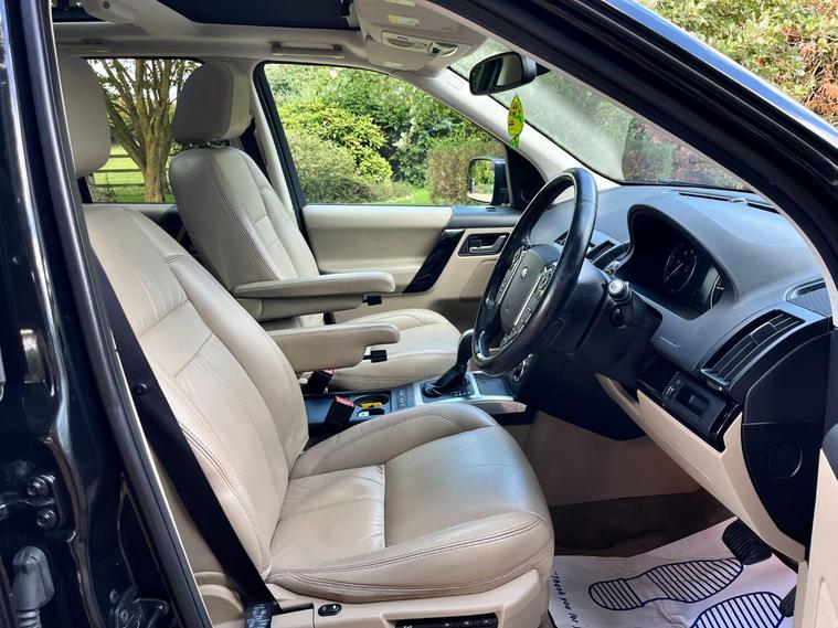 THIS STUNNING TOP OF THE RANGE FREELANDER 2 2.2 SD4 HSE LUXURY WAS ONE WE SOLD IN 2022, IT COMES IN Santorini Black Metallic WITH HEATED BEIGE LEATHER SEATS. IT BENEFITS HAVING A HEATED STEERING WHEEL, REVERSE CAMERA, SUNROOFS AND A FIXED TOWBAR. IT COMES WITH SERVICE HISTORY, JUST FULLY SERVICED AND MOTD. THE CAMBELT AND WATER PUMP HAS ALSO BEEN REPLACED. Part service history, Excellent bodywork, Beige Full leather interior - Excellent Condition, Four wheel-drive, 5 seats, Santorini Black Metallic, 3 owners, Upgrades - Metallic Paint550, Body Side Mouldings, Glass - Privacy - Rear of B Post, Finish - Grand Black Lacquer255, Rear View Camera Includes Hitching Guidance and Parking Bar Graphics250, SIDE STEPS 495, FIXED TOWBAR 595, Standard Features - 19in 10-spoke alloy wheels - diamond turned with contrast paint Style 2, 7in Touch Screen, Air Filtration, Airbags - Driver Knee, Airbags - Driver and Passenger Side, Airbags - Full Size Driver, Airbags - Full Size Passenger, Airbags - Row One and Two Head Curtain, Alarm System - Perimetric, All-Terrain ABS - Anti-Lock Braking System, Antenna - side window glass - tailgate glass for FM and VICS/TMC, Armrest - Rear Centre with Storage Compartment and 2 Cupholders, Armrests - Front - Driver and Passenger, Audio System - 825W Meridian Sound System with Radio and Single CD-Speakers x17-7in Touch Screen, Audio System - DAB, Audio system - Auxillary Socket with MP3 Compatibility, Automatic Headlights, Auxiliary Heater - Electrical Positive Temperature Coefficient, Auxiliary Power Sockets 12v - Front, Auxillary Power Sockets - Rear and Load Space, Bluetooth Telephone Connectivity, CBC - Cornering Brake Control, Carpet Mats - Premium - Front and rear, Carpet colour option, Centre console - Covered Storage Compartment, Clearview Pack, Climate Control - Automatic with Air Filtration and Air Quality Sensing for Automatic Recirculation, Cold Climate Pack, Cruise Control, DSC - Dynamic Stability Control, Daytime Running Lights, Design Pack, Diesel Misfuelling Protection Device, Driver Information System, EBA - Electronic Brake Assist, EBD - Electronic Brake-Force Distribution, EPB - Electronic Park Brake, ETC - Electronic Traction Control, Electric Windows - Front and Rear with Drivers and Front Passengers One Touch Open/Close, Electrically adjustable front seats with electric lumbar support for driver, Exterior Door Handles - Premium Body Coloured, Exterior Mirrors - Auto Dipping in Reverse Gear, Exterior Mirrors - Electric Adjustment - Heated - Power Folding - Puddle Lights with Memory Function, Exterior mirrors - Premium body coloured, Finish - Grand Black Lacquer, Fixed rear glass Panoramic roof, Footwell Lights - Front, Front Door Puddle Lights, Grille with Bright Finisher, Headlight powerwash, Headlights - Xenon with Automatic Levelling and LED Signature Lights, Headlights Powerwash Jets - Premium Body Coloured, Hitching Guidance, ISOFIX Child Seat Anchor Points, Interior Rear View Mirror - Auto Dimming with Humidity Sensor, Land Rover - Tyre Repair System, Leather Steering Wheel, Locking Wheel Nuts, Map Reading Lights - Front, Memory Function - with 3 Settings for Drivers Seat and Exterior Mirrors, Navigation System - includes TMC and Voice Activation, Parking Aid - Front, Parking Aid - Rear, Parking Aid - Rear View Camera, Power Assisted Steering, RSC - Roll Stability Control, Rain Sensing Windscreen Wipers, Rear Bumper - Premium Body colour, Rear Child Seat Top Tethers, Rear Window Wash-Wipe System with Intermittent Function, Remote Central Locking, Roller Blind Luggage Cover, Seat belts - front pre-tensioners with load limiters, Seats - 60/40 Split, Seats - Driver Manual Height Adjustment, Seats - Heated - Driver and Front Passenger, Seats - Lumbar Support - Drivers, Seats - Rear Centre Head Restraint, Side Power Vents - Titan Finish, Signature Strip with Bright Insert, Sill Covers - Premium body colour, Soft feel paint on interior door grabs, Speakers x17, Steering Column - Manual Fo