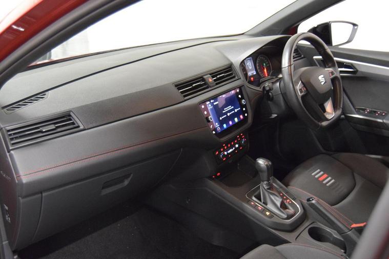 This 2021 SEAT Ibiza TSI FR offers excellent peace of mind with its MOT valid until May 2026. This stylish hatchback is equipped with a responsive 1.0 litre petrol engine, meeting Euro 6 emissions standards. Inside, youll find a host of convenient features designed to enhance your driving experience, including steering wheel mounted gearshift paddles for manual control, automatic headlights for effortless visibility, and a Bluetooth system for seamless audio streaming and handsfree calls. Stay comfortable with dual zone climate control, and keep your smartphone connected with Full Link integration, supporting both Android Auto and Apple CarPlay. The SEAT Ibiza TSI FR is designed for practicality and enjoyment. Its acceleration from 0 to 62mph in just 10.0 seconds demonstrates its nippy performance, making it a capable companion for both city driving and longer journeys. Furthermore, the generous boot space ensures you have ample room for shopping, luggage, or sports equipment, setting it apart from many other vehicles in its class. This combination of performance, technology, and spaciousness makes this Ibiza a well rounded choice.