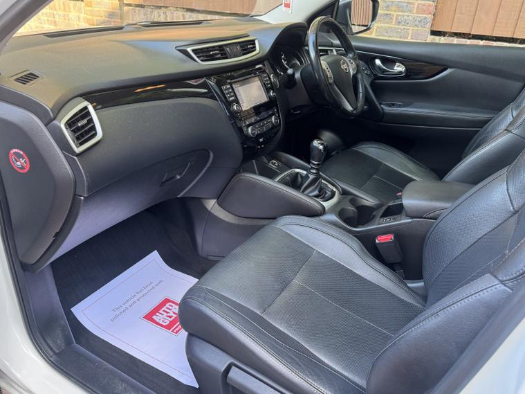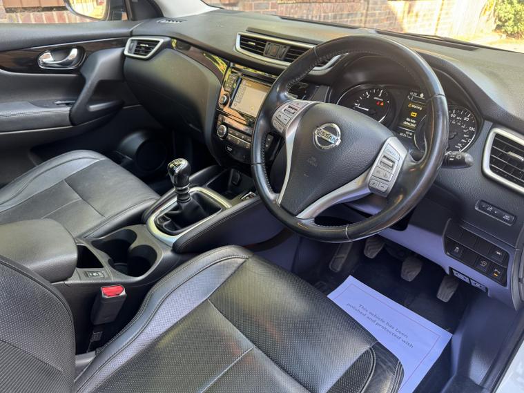 Peak Performance Cars are pleased to offer this beautiful low mileage example of this sought after SUV Nissan Qashqai 1.5dCi Tekna , Registration is DX65PBO, Buy with Confidence, we are an AA Approved Dealership, This SUV is packed with features and drives great with its 1.5dCi Engine producing 110bhp and returning up to 72.4mpg , Finished in Pearlescent Storm White paintwork with contrasting Black Heated Leather Sports seats, its a great combination. This Qashqai is in excellent condition and is a real credit to its previous owner. This was a demonstator at a Nissan Main Dealership for 10 Months then owned by the same private owner since then. With only 80, 257 miles from new and boasts a Full Service History consisting of a stamped service book. Great specification including Black Heated Leather Sports Seats, Automatic, Bi-LED Headlights, LED Day Time Driving Lights, Automatic Wipers, Heated Windscreen, Heated Folding Mirrors, Keyless Entry, Keyless Start, hill Assist, Satelite Navigation, Bluetooth Handsfree System, Touch Screen, 360 Degree Camera, Lane Departing Warning, Driver Attention Alert, Moving Object Alert, Intelligent Park Assist, Cruise Control with Limiter, Air Conditioning, Digital Climate Control, Glass Panoramic Roof, Visibility Package, Automatic Dimming Rear View Mirror, Front and Rear Parking Sensors, Rear Parking Camera, Sun Protection Package, Multi-functional Steering Wheel, Electric Windows, Electric Heated Folding Mirrors, CD Player, DAB Radio, Push Button Start, USB / Aux Point, Traction Control, 19 Gloss Black Alloys plus more... All Documents and Books are present, X2 Remote Keys, 3 Months Warranty, 12 Months AA Breakdown Cover, Walk around Video on Request, Indoor Showroom, MOT: 31/09/2026, Registration is DX65PBO, VIEWINGS BY APPOINTMENT ONLY, Contact Mark on 01562211479, Peak Performance Cars are a family run business and have been in the motor industry since 1999. We pride ourselves on our customer service and attention to detail when it comes to supplying our hand selected vehicle. Please check out our Google reviews for your piece of mind. Payments are accepted via Bank Tranfer and all Major Debit and Credit Cards. Vehicle registered: 01/09/2015