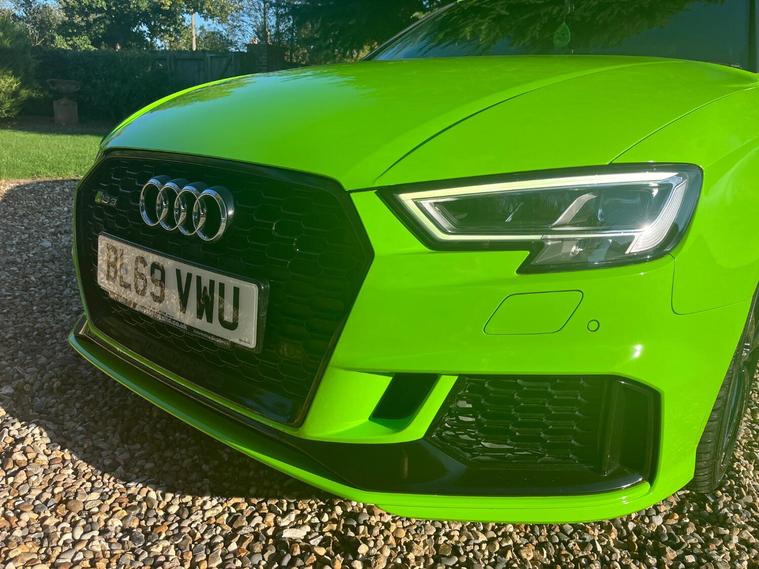 THIS STUNNING LOW MILEAGE AUDI RS3 2.5 TFSI S TRONIC QUATTRO COMES WRAPPED IN Kyalami Green. (ORIGINAL COLOUR IS Daytona grey, pearl effect) THE WRAP CAN BE REMOVED IF YOU PREFER THE GREY. IT HAS FULL SERVICE HISTORY, SERVICED 5 TIMES INCLUDING JUST SERVICED. THE GEAR BOX SERVICE WAS CARRIED OUT IN 2024. IT COMES WITH HEATED SEATS, REVERSE CAMERA AND A VIRTUAL COCKPIT. Full service history, Excellent bodywork, Black Full leather interior - Excellent Condition, Tyre condition Excellent, Four wheel-drive, 5 seats, Daytona grey, pearl effect, 5+ owners, Upgrades - Comfort and Sound Package, Standard Features - 19in Alloy Wheels - 5-Arm Blade Design in Galvanised Silver, 6-Airbag System with Knee Airbag for Driver, Aluminium Interior Elements, Anti Theft Locking Wheel Bolts, Anti-Theft Alarm, Audi Beam, Audi Connect Infotainment Services - 36 Month Trial, Audi Drive Select, Audi Parking System Plus, Audi Phone Box with Wireless Charging, Audi Smartphone Interface, Audi Sound System, Audi Virtual Cockpit with RS Specific Display, Auto-Dimming Rear-View Mirror, Bluetooth Interface, Brake Calipers Painted in Black with RS Logo at the Front, Cruise Control, DAB Digital Radio, Door Mirrors - Electrically Adjustable and Heated with Integrated LED Side Indicators, Door Sill Trims - Inlays in Aluminium and Illuminated with RS3 Logo, Dual-Zone Electronic Climate Control, ESC - Electronic Stabilisation Control inc ABS - ASR and EDL, Electric Windows - Front, Email and Text Messages can be Displayed on your Vehicles MMI, First Aid Kit and Warning Triangle, Front Centre Armrest, Headlights Washers, Hill Hold Assist, ISOFIX Child Seat Mounting and Top Tether, Inlays - Optic 3D Design - Titanium Grey, Interior Light Package, LED Headlights with LED Rear Lights and Dynamic Rear Indicators, Light and Rain Sensor, MMI Navigation Plus with MMI Touch, Manual Seat Adjustment, Matt Aluminium Look Door Mirrors, Matt Aluminium Look Window Trims, Online Media Streaming, Pedals in Stainless Steel, Privacy Glass, Progressive Steering, RS Body Styling, RS Brake System, RS Dual-branch Exhaust System with Two Chrome-plated Oval Tailpipe Trims, RS Flat Bottomed 3 Spoke Leather Multi-function Sport Steering Wheel with Alcantara Inserts and Gear Shift Paddles in Aluminium Look - Contrast Stitching and RS Badging, RS Gear Lever Knob in Alcantara with Leather Gaiter with Contrast Stitching, RS Sports Suspension, RS3 Badge on Grille and on Luggage Compartment Lid, Remote Central Locking, Seat Belt Monitoring, Seats - Heated Front, Split Folding Rear Seat Bench - 60-40 or Fully, Storage Package, Tool Kit, Tyre Pressure Warning Light, Tyre Repair Kit, ALL CARS COME WITH WARRANTY, FINANCE AND PART EXCHANGES WELCOME, ALL VIEWINGS BY APPOINTMENT, 29, 495
