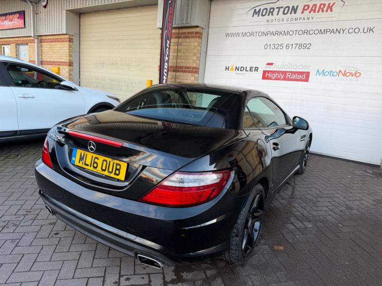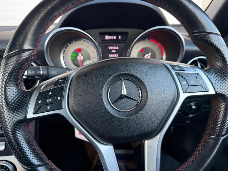 This 2016 Mercedes-Benz SLK250d AMG Sport boasts a clear vehicle history, offering peace of mind for its next owner. This stylish convertible features a powerful yet efficient 2.1 litre Euro 6 diesel engine, paired with the sporty AMG Sport trim. Inside, youll find a well equipped cabin with six speakers for your audio enjoyment, a convenient USB port, and Bluetooth connectivity for hands-free calls. The Headlamp Assist system automatically activates the headlights, ensuring you always have optimal visibility. Experience impressive performance with this SLK, accelerating from 0 to 62 miles per hour in just 6.6 seconds. This model stands out with its remarkable fuel economy, achieving an outstanding 71 miles per gallon, and its low CO2 emissions further enhance its appeal. The large boot space provides practicality for your journeys, while the distinctive brake calipers with Mercedes-Benz lettering add a touch of sporty sophistication.