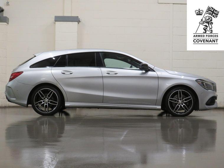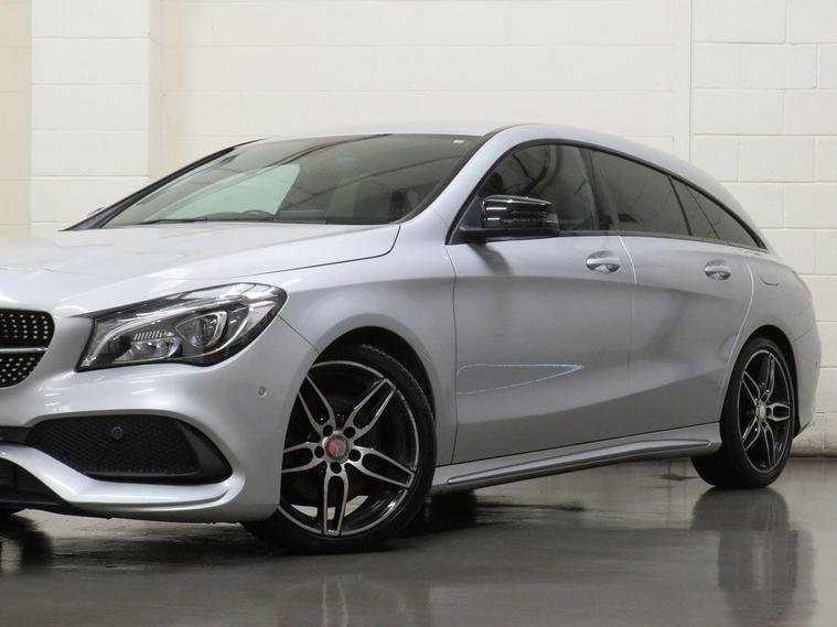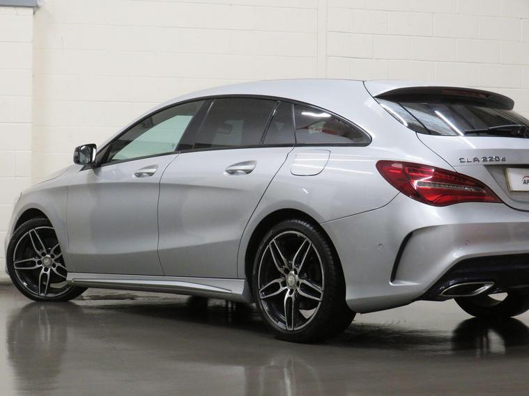 Arrow Motor Company are pleased to present this fantastic, Mercedes CLA220d AMG Line Shooting Brake finished in the stunning Polar Silver Metallic Paintwork, with Black Half Alcantara and Leather Interior. Equipped with Mercedes 2.1-Litre Diesel Engine producing 175bhp, whilst providing the most economical of drivers with an incredible 58.9mpg, with potential to rise to 67.3mpg in Extra-Urban environments. This vehicle also benefits from the following impressive list of features below. , Interior Features, Satellite Navigation | Automatic Tri-Zone Climate Control with Digital Display | 7-Inch Digital Multimedia Display | 4 Inch Central Cluster Display | Voice Command | Front and Rear Ultrasonic Parking Sensor Distance Indicators | Active Brake Assist | 5x Adjustable Black Alcantara and Leather Red Stitched Front Seats | Electric Cockpit Boot Control | Automatic Headlight Switch | Electric Parking Brake | Black Leather Red Stitched Flat Bottom Multifunctional Steering Wheel | Chrome Mercedes-Benz Door Sills | Wheel Mounted Chrome Paddle Shifters | Silver Lined Media Dial Control | Front and Rear Electric Windows | Electrically Adjustable Wing Mirrors | 6x Speaker System | Comfort Mode | Sport Mode | Eco Mode | CD Player | SD Port | Black Leather and Alcantara Contrast Stitched Door Cards | Black Leather Contrast Stitched Centre Console | Chrome Plated Peddles | Speed Limiter | Multifunctional Trip Computer | Chrome Gyro Air Vents | Illuminated Chrome Door Sills | AMG Floor Matts | ISOFIX |, Exterior Features, 18-Inch 5x Split Spoke Diamond Cut Gloss Black Alloy Wheels | AMG Line Body Kit and Styling | Front and Rear Ultrasonic Parking Sensors | LED Day Time Running Lights | LED Automatic Lights | Rear Privacy Glass | Dual Chrome Exhausts | Rear Heated Window | Chrome Lined Front Grill | Roof Spoiler | Wing Mirror Mounted Indicators | Gloss Black Front Splitter | Black Wing Mirrors | Body Coloured Door Handles |