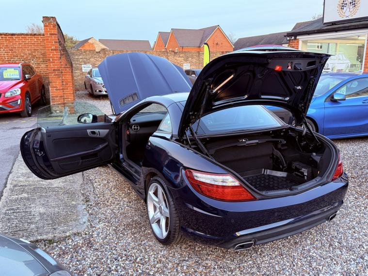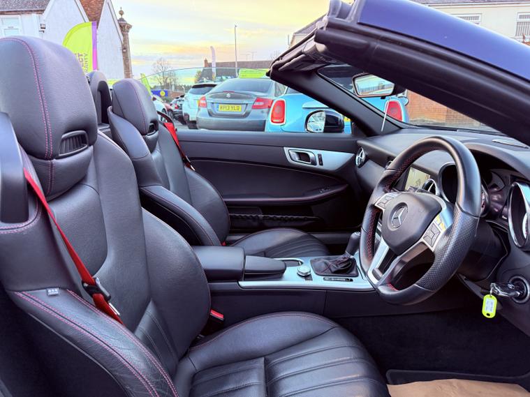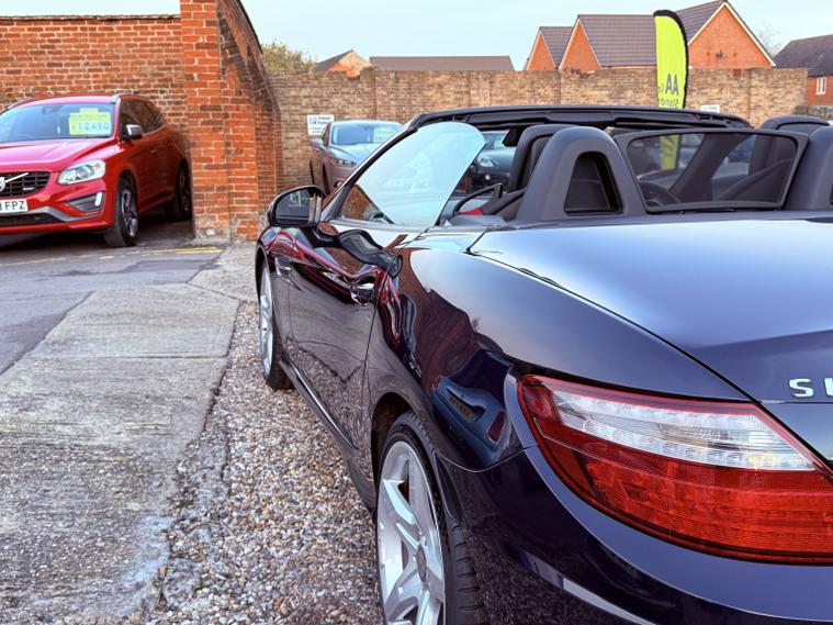 Stunning 2014 Mercedes-Benz SLK250 AMG Sport, Powerful 2.1 Turbo Diesel With 201BHP, 7 Speed Automatic, 2 Door Cabriolet With Electric Folding Roof, Finished In Deep Metallic Blue, Fantastic Spec Including Full Black Leather Interior With Contrasting Red Stitching &Seat Belts, Sat Nav, DAB Radio, Bluetooth, Heated Front Seats & Air Scarf, Climate Control, Switchable Drive Modes, Cruise Control, Automatic Headlamps & LED Day Time Running Lamps, Electric Windows & Door Mirrors, Front & Rear Parking Sensors, Spare Wheel, Alloy Wheels, Remote Central Locking & More, full Service History (Serviced @ 5, 15, 27, 36, 45, 52, 58, 63, 68 & 75, 000 Miles), Long MOT (Expires 21/08/2026), Only 2 Owners From New (Same Keeper Since 27/07/2015), Supplied With 2 Keys & Owners Manuals, 3 Months Engine And Drivetrain Warranty With Options To Extend, Finance Available, HPI Clear, AA Approved Dealer, 12 Months Breakdown Cover Free Of Charge, Driveaway Insurance Available, All Of Our Cars Are Supplied With A Workshop Inspection Including MOT & Service If Required Plus A Full Valet, Debit Card Payments Accepted, FCA Regulated Dealer, No Admin Fees, Part Exchange Welcome, Delivery Can Be Arranged For An Additional Fee, Sunday Viewings Available By Pre Arranged Appointments, dealer's website