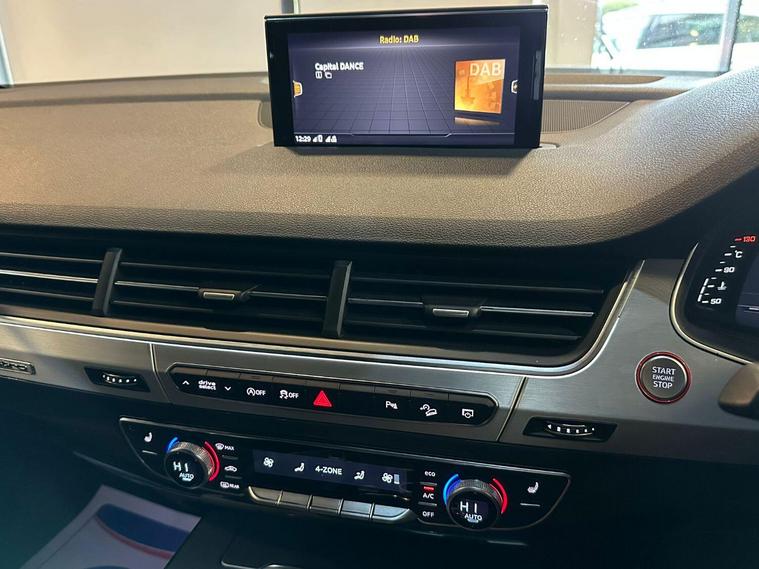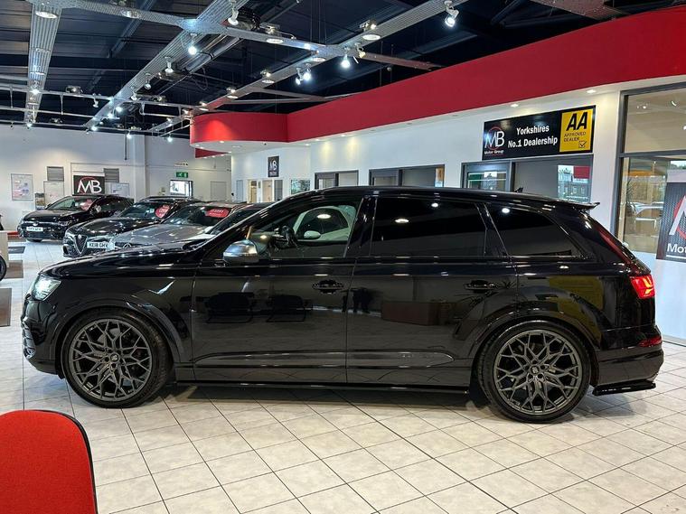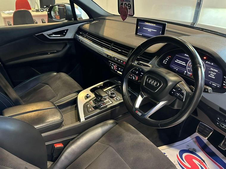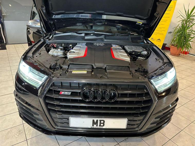 Audi SQ7 4.0 TDI V8 (2018), Fuel Type: Diesel, Transmission: 8-speed Tiptronic automatic, Color: Black, Ownership History: 6 previous owners, Drive Type: Quattro all-wheel drive, Body Style: 5-door luxury SUV, Performance & Efficiency, Engine: 4.0L twin-turbocharged V8 diesel with electric compressor, Power Output: ~429 bhp, Torque: 900 Nm, 062 mph: ~4.8 seconds, Top Speed: Electronically limited to 155 mph, Fuel Economy: ~35 mpg (combined), CO Emissions: ~190 g/km, Key Features, Exterior: LED Matrix headlights, 2122 alloy wheels, sporty body kit, Interior: Valona leather, heated seats, ambient lighting, 7-seat layout (optional), Tech: Audi Virtual Cockpit, MMI Navigation Plus, Bang & Olufsen sound system, Safety & Driver Aids: Adaptive cruise control, lane assist, night vision, 360 cameras. The specification and technical details in this advert are pulled through from a third-party source. MB Motor Group therefore cannot guarantee or warrant the accuracy of this information. We therefore kindly ask customers to check the specification of their chosen car to ensure it meets all of their requirements prior to purchase.