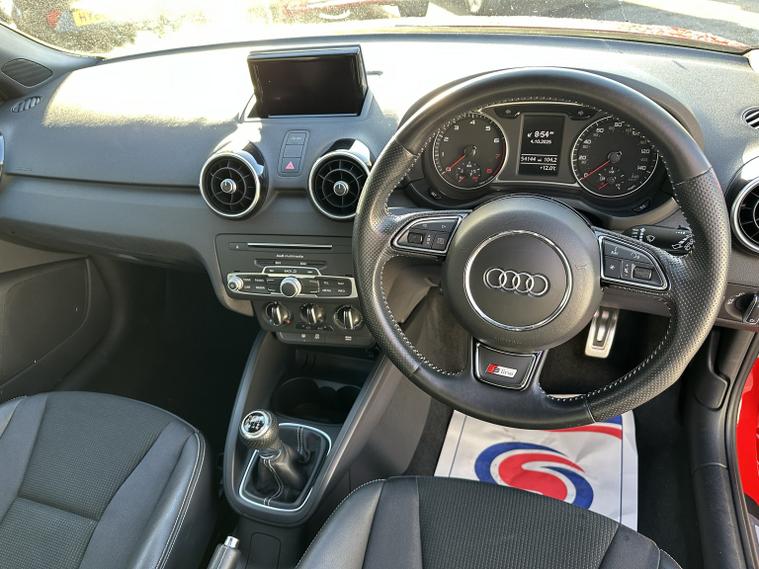 Stunning condition inside and out in brilliant red with deep grey/black half leather/cloth interior. It has all the S-Line specification that you would expect including S-line alloy wheels, electric windows front and rear, electric mirrors, remote central locking with 2 keys, S-Line high back half leather seats. AM/FM/DAB digital radio with cd player aux and Bluetooth music streaming, colour sat nav, climate controlled air conditioning and much much more. Comes with an impressive service history and an MOT through to September 2026. 3 months parts and labour warranty is standard and this can be extended to 12 months for only 199. Finance is also available so please call 01993792512 for more details or to arrange a viewing.