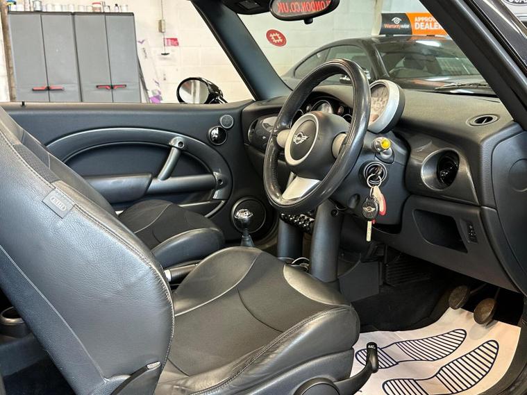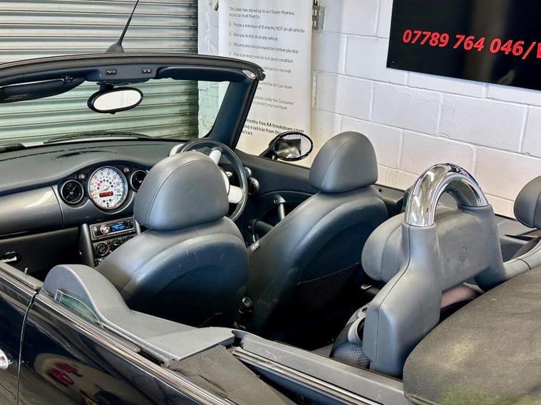 Ready to drive away today Mini Cooper 1.6 convertible, lots of service history and recent parts including exhaust, tyres and service, finished in black with 16alloy wheels, reverse parking sensors, half leather sports seats, Pioneer stereo, manual and ULEZ compliant. 2 keys, buy with confidence from an award winning, AA Approved dealership with a variety of warranty products available. Viewing available seven days a week by appointment (evening and weekends available), nationwide delivery. Same day finance decisions in house at competitive rates, nil deposit options, please inquire with a simple call to drive away today. Drive away insurance, part exchange welcome, top prices paid. Member of the Motor Trade trading standards and motoring ombudsman code of practice