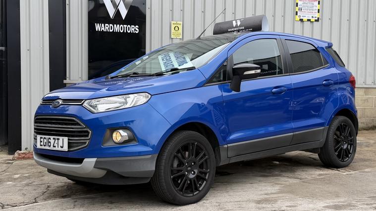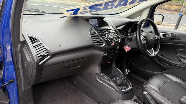 Ward Motors Leeds Used Cars Leeds are pleased to offer this Ford Ecosport 1.0 T EcoBoost Titanium S Blue 5dr, the car is in excellent condition throughout. Perfect colour combination and a great specification too including Satellite Navigation, Heated Part Leather Interior, Cruise Control, Bluetooth, DAB radio, USB point, AUX point, Heated Front Windscreen, Drivers Armrest, Parking Sensors, Privacy Glass, Electric Windows, ISOFIX, alloy wheels, leather steering wheel, speed display, CD player and much much more. The car will be supplied with 2 keys, an MOT until August 2026 and an up to date service history including 10 service stamps. FINANCE NOW AVAILABLE!! FREE 3 months national cover warranty with all purchases, 500 per claim with the option to up this limit to 1, 000 per claim for only 59! Peace of mind package offer 12 months national cover warranty including breakdown cover now on offer for only 399*. WE OFFER DELIVERY Nationwide Delivery is available 7 days a week, ask for a quotation now! Finance now available same day drive away, we are now closely teamed up with Close Motor Finance, CarFinance247 and CarLoan2Day for you finance needs. We also work with Zuto, Carloans365, CarloansUK and many more outside brokers. Reserve now for only 99! Pop down and see the team at Ward Motors Leeds Used Cars Leeds located in Armley LS12 opposite Armley Park Main Entrance. Browse, Try, Buy DISCLAIMER: The above listed specification is true and correct. Any other specification listed elsewhere can sometimes be incorrect. Please check with the team to clarify this if needed prior to any purchase. Ward Motors Leeds do not warrant or re gas air conditioning hence why we do not advertise any of our cars/vans with AC/air conditioning. *Warranty 499 on 4X4 and engines above 2.2 litre. THIS CAR HAS JUST ARRIVED INTO STOCK - THE CAR IS CURRENTLY AWAITING PREPARATION - MORE IMAGES TO FOLLOW IN DUE COURSE ONCE PREPARED AND PROFESSIONALLY VALETED.
