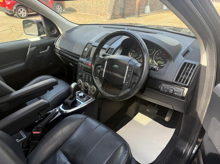 getaround in this nice low mileage Freelander from land Rover. This range topping automatic HSE model looks great finished in black with contrasting full black leather interior. It has a good spec that includes cruise control, heated windscreen. heated seats, panoramic glass sunroof, colour Sat-nav, parking sensors and air-conditioning. The car has a comprehensive service history that is made up of some 9-dealer stamps and includes the all-important Cam-belt change. It comes with the owners book pack, fully stamped service booklet, two keys, locking wheel nut and clear HPi certificate. Phone, text or email for an appointment to view this sought after diesel automatic SUV soon.