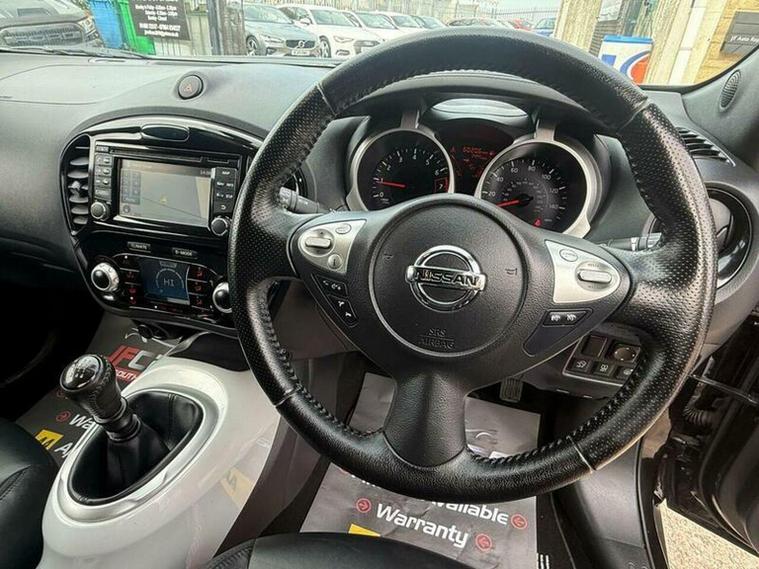 Nissan Juke 1.6 DIG-T Tekna Euro 6 (s/s) 5dr, WU17MKM, 2017 (17), 60, 206 miles, Petrol, Manual, Black, 3 owners, 7, 295, https://youtu.be/KC5vSBHC1I8?si=yaFZqf-TRRNcbQQY, This 2017 Nissan Juke DIG-T Tekna is a standout choice, offering a compelling blend of style and practicality. Powered by a responsive 1.6 litre petrol engine, this Euro 6 compliant model delivers an impressive 0-62mph in just 8.0 seconds, making it a lively performer. The Tekna trim level ensures a wealth of desirable features, including Bluetooth integration for seamless phone connectivity, and an Intelligent Key system with keyless entry and a push button start for ultimate convenience. Beyond its engaging performance, this Juke excels in efficiency and safety. Achieving a remarkable 47 miles per gallon, it represents excellent value for money. Its low insurance group rating further contributes to affordable ownership. The advanced Safety Pack, featuring Blind Spot Assistance and a 360 degree camera, provides enhanced awareness and confidence on the road. Additionally, the automatic climate control with pollen filter ensures a comfortable cabin environment, while the colour reversing camera aids in effortless parking.