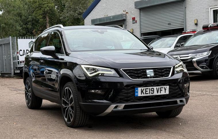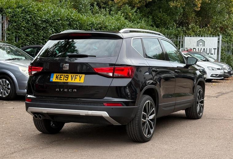 SAME DAY FINANCE AVAILABLE WITH 0 DEPOSIT, CALL OUR FINANCE TEAM FOR A QUOTATION TODAY, GREAT FINANCE PACKAGES, LOW RATE FINANCE, INQUIRE WITH US, ONLY ONE FORMER OWNER, FULL SERVICE HISTORY, 12 MONTNS MOT AND NEW SERVICE OFFERED ON SALE, 12 MONTHS AA BREAKDOWN COVER, THREE MONTSH WARRANTY, TWO SETS OF KEYS, NAVIGATION SYSTEM, REVERSING CAMERA, MULTI ZONCE CLIMATE CONTROL, DIAMOND CUT ALLOYS, DELIVERY AVAILABLE (opt), ALL MAJOR CREDIT & DEBIT CARDS PAYMENT ACCEPTED. OPEN 7 DAYS A WEEK, VISIT OUR WEBSITE FOR MORE CARS: dealer's website The vehicle specification displayed may not be exact for this vehicle. Please contact us to confirm the precise specifications. This 2019 SEAT Ateca TSI EVO XCELLENCE Lux boasts a clear vehicle history, offering you peace of mind. This stylish SUV features a 1.5 litre Euro 6 petrol engine, delivering a responsive drive. The XCELLENCE Lux trim ensures a premium experience, enhanced by the Convenience Pack with automatic headlights, Full LED headlights for superior visibility, and the Winter Pack including heated seats for comfort in colder weather. Parking is made effortless with the Top View Camera providing a 360 degree view, and the Advanced Driving Assistance Pack includes Blind Spot Assistance for added safety. Experience impressive performance with an acceleration of 0 to 62 miles per hour in just 8.6 seconds. The Ateca also offers generous boot space, making it practical for all your needs. Its low CO2 emissions highlight its efficiency, making it a more environmentally conscious choice compared to many other vehicles in its class.