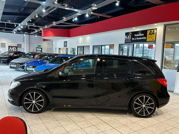 Mercedes-Benz B-Class B200 CDI Sport Auto (2014), Fuel Type: Diesel, Transmission: 7-speed automatic (7G-DCT dual-clutch), Color: Black, Year: 2014, Ownership History: 3 previous owners, Body Style: 5-door MPV (Multi-Purpose Vehicle), Drive Type: Front-wheel drive, Performance & Efficiency, Engine: 1.8L 4-cylinder turbocharged diesel, Power Output: ~134 bhp, Torque: ~300 Nm, 062 mph: ~9.5 seconds, Top Speed: ~130 mph, Fuel Economy: ~64 mpg (combined), CO Emissions: ~115 g/km, Sport Trim Highlights, The Sport trim adds a touch of luxury and athleticism:, Exterior: 17 alloy wheels, chrome detailing, LED daytime running lights, Interior: Sports seats, leather-trimmed steering wheel, brushed metal accents, Tech: Bluetooth, USB/AUX, cruise control, optional COMAND infotainment system, Safety: Collision prevention assist, multiple airbags, ISOFIX mounts. The specification and technical details in this advert are pulled through from a third-party source. MB Motor Group therefore cannot guarantee or warrant the accuracy of this information. We therefore kindly ask customers to check the specification of their chosen car to ensure it meets all of their requirements prior to purchase.