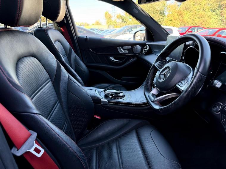 This 2017 Mercedes Benz GLC43 V6 AMG (Premium Plus) boasts an impressive provenance, having had only two owners and featuring an MOT valid until February 2026. This four wheel drive, Euro 6 compliant model is powered by a 3.0L petrol engine, offering a remarkable 0-62mph acceleration in just 4.9 seconds. Inside, youll find luxurious Black Leather with Red Contrast Stitching, complemented by a Premium Plus Package that includes a branded sound system, keyless entry, and a panoramic sunroof. For convenience and safety, it is equipped with a 360 degree camera system with parking assistance, automatic climate control, and LED High Performance headlamps with integrated daytime running lights. The GLC43 AMG stands out with its exceptional performance, indicated by its rapid acceleration, making it a more dynamic choice than many similar vehicles. Its substantial 2460 kg towing weight further enhances its versatility. This model also benefits from a low insurance group, offering potential cost savings. Practicality is assured with its large boot space, ideal for luggage or shopping. The inclusion of memory seats within the Premium Plus package adds a touch of everyday luxury, ensuring comfort for every journey.