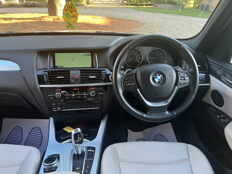 THIS STUNNING 1 FORMER KEEPER BMW X3 2.0D XLINE AUTO XDRIVE HAS BEEN OWNED BY CURRENT OWNER FOR 10 YEARS. IT HAS FULL SERVICE HISTORY BY BMW, SERVICED 13 TIMES BY A BMW MAIN DEALER, INCLUDING JUST FULLY SERVICED AND MOTD AND NEW REAR DISCS AND PADS FITTED. IT COMES WITH OVER 5600 OF EXTRAS including a reverse camera and heated seats. IT COMES IN Space Grey Metallic WITH Nevada leather, Oyster. Beige Full leather interior, Four wheel-drive, 5 seats, Space Grey Metallic, 2 owners, Upgrades - Media Package - BMW Professional, 19in Alloy Wheels - Light Y-Spoke Style 608, Navigation System - BMW Professional Multimedia, Advanced Parking Package, Enhanced Bluetooth Telephone Preparation with USB Audio Interface, Reversing Assist Camera, Concierge Service, Headlining - Anthracite, Through-Loading System, Interior Trim - Brushed Aluminium, Luggage Compartment Separating Net, Steering Wheel - Gearshift Paddles, Internet, Servotronic Steering, Remote Services, Nevada Leather - Oyster, Standard Features - 12V Power Socket - Centre Console, 12V Power Socket - Luggage Compartment, 18in Alloy Wheels - Light Double-Spoke Style 605, ABS - Anti Lock Braking System, ASC - Automatic Stability Control, Additional Detachable Cupholder, Air Conditioning - Automatic with Two-Zone Control, Air Microfilter, Airbags - Driver, Airbags - Driver and Front Passenger Side, Airbags - First and Second Seat Row ITS Head, Airbags - Passenger, Airbags - Passenger Deactivation, Alarm System Thatcham 1 with Remote Control, Aluminium Effect Side Sill Cover, Ambient Interior Lighting, Anti Roll Bars - Front and Rear, Armrest - Front with Storage Compartment, Automatically Dimming Rear View Mirror, Auxiliary Input, BMW Emergency Call, BMW Mobility System, BMW Navigation System, BMW Professional Radio - Single CD and MP3, BMW TeleServices, Bluetooth Hands Free with USB Audio Interface, Bootlid Operation - Powered, Brake Drying, Brake Fade Compensation, Brake Force Display, Brake Pre-Tensioning, CBC - Cornering Brake Control, Central Locking - Doors Boot Fuel Cap via Remote Key, Child Proof Locking System - Rear Doors, Child Seat ISOFIX Attachment - Rear, Courtesy Lights - Front and Rear with Soft On-Off Dimming, Crash Sensor - Activating Central Locking-Hazard Warning Lights-Fuel Cut Off, Cruise Control with Brake Function, DAB Digital Radio, DBC - Dynamic Brake Control, DSC - Dynamic Stability Control - Stabilises the Vehicle in Extreme Situations - Controls Traction, DTC - Dynamic Traction Control, Deformation Zones - Front and Rear, Door Handles - Body Colour, Door Mirrors - Drivers Aspheric, Door Mirrors - Electric and Heated and Aspheric, Door Sill Finishers with BMW xLine Designation, Drive Performance Control, EBD - Electronic Brake-Force Distribution, Electric Windows - Front and Rear with Open-Close Fingertip Control, Electro Mechanical Parking Brake, Embellishers for Instrument Panel - Black High-Gloss, Engine Immobiliser, Exhaust Tailpipe - Finisher in Chrome, Exterior Trim - Matt Aluminium, First Aid Kit, Floor Mats - Velour, Follow Me Home Headlight Function, Footwell Lights - Front, Front Fog Lights, Glove Compartment - Illuminated, Grab Handles with Four Coat Hooks, HDC - Hill Descent Control, Head Restraints - Front and Rear, Head Restraints - Height and Angle, Headlights - Automatic Activation, Headlights - Height Adjustment, Heated Windscreen Washer Jets, High Level Third Brake Light, Hill Start Assist, Incorrect Fuelling Protection System, Interior Colour - Black, Interior Lighting, Interior Trim - Dark Copper, Kidney Grille - Chrome with Satin Aluminium Vertical Slats, Locking Wheel Bolts, Luggage Compartment - Additional Storage on Each Side and Under Floor, Luggage Compartment - Illuminated with Four Lashing Eyes in Boot Floor, Luggage Compartment - Removable Cover, Media Package - BMW Business, Multifunction Controls for Steering Wheel, Navigation System - BMW Business Advanced, OBC - On-Board Computer, PDC - Park Distance Control - Front and Re
