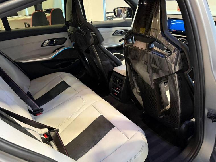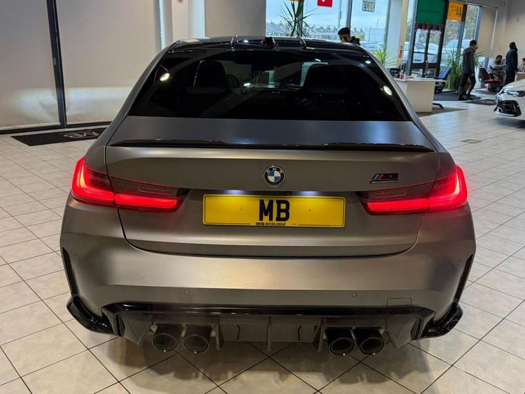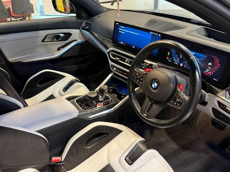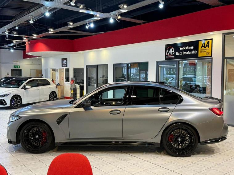 BMW M3 Competition drive Saloon 3.0 Auto (2023), Fuel Type: Petrol, Transmission: 8-speed M Tiptronic automatic, Color: Grey, Year: 2023, Ownership History: 4 previous owners, Body Style: 4-door saloon, Drive Type: M drive all-wheel drive (rear-biased), Performance & Efficiency, Engine: 3.0L twin-turbocharged inline-6 (S58 engine), Power Output: 510 bhp (375 kW), Torque: 650 Nm, 062 mph: 3.5 seconds, Top Speed: 155 mph (electronically limited; optional increase to 180 mph with M Drivers Package), Fuel Economy: ~28 mpg (combined), CO Emissions: ~230 g/km, Road Tax: High due to emissions and performance rating, Competition drive Highlights, This top-tier M3 variant blends track-ready performance with daily usability:, Exterior: Aggressive M styling, large kidney grille, 19/20 staggered alloy wheels, quad exhausts, Interior: M-specific digital cockpit, Merino leather sports seats, ambient lighting, Tech: BMW iDrive 8, curved display, Apple CarPlay/Android Auto, adaptive suspension, Safety & Driver Aids: Parking Assistant Plus, lane assist, adaptive cruise control, collision warning, Things to Consider, Ownership Count: 4 owners in 2 years is highask for full service history and usage details, Tyres & Brakes: High-performance setup wears quicklyinspect condition and replacement history, Warranty: May still be under manufacturer warranty depending on registration date. The specification and technical details in this advert are pulled through from a third-party source. MB Motor Group therefore cannot guarantee or warrant the accuracy of this information. We therefore kindly ask customers to check the specification of their chosen car to ensure it meets all of their requirements prior to purchase.