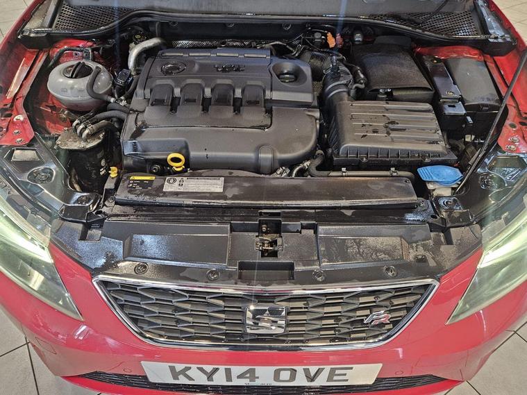 SEAT Leon 2.0 TDI CR FR Manual (2014), Fuel Type: Diesel, Transmission: 6-speed manual, Color: Red, Year: 2014, Ownership History: 4 previous owners, Body Style: 5-door hatchback, Drive Type: Front-wheel drive, Performance & Efficiency, Engine: 2.0L turbocharged diesel (common rail injection), Power Output: 148181 bhp (depending on variant), Torque: 320380 Nm, 062 mph: 7.58.4 seconds, Top Speed: 134142 mph, Fuel Economy: 65 mpg (combined), CO Emissions: 109119 g/km, Road Tax: Low due to BlueMotion-style efficiency, FR Trim Highlights, The FR (Formula Racing) trim adds sporty styling and dynamic features:, Exterior: 17 or 18 alloy wheels, LED daytime running lights, twin exhausts, Interior: Sports seats, red stitching, flat-bottom steering wheel, Tech: Touchscreen infotainment, Bluetooth, DAB radio, optional sat nav, Safety: Multiple airbags, traction control, ISOFIX mounts. The specification and technical details in this advert are pulled through from a third-party source. MB Motor Group therefore cannot guarantee or warrant the accuracy of this information. We therefore kindly ask customers to check the specification of their chosen car to ensure it meets all of their requirements prior to purchase.