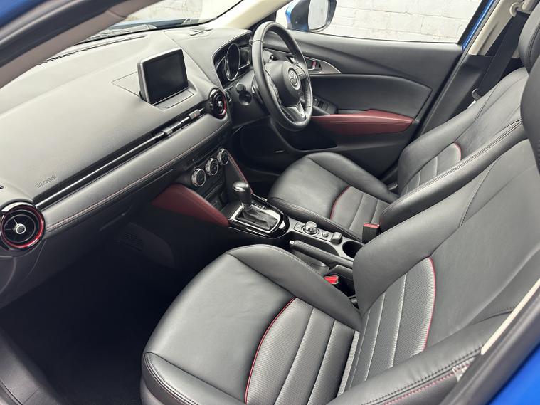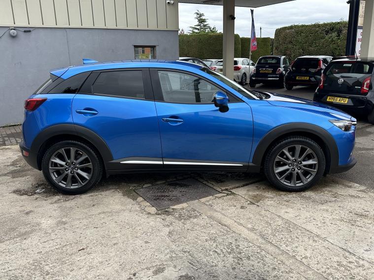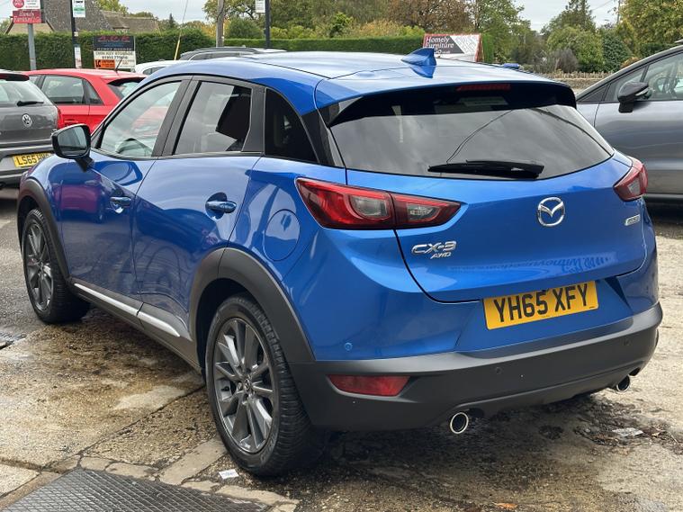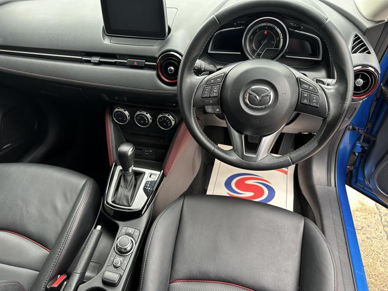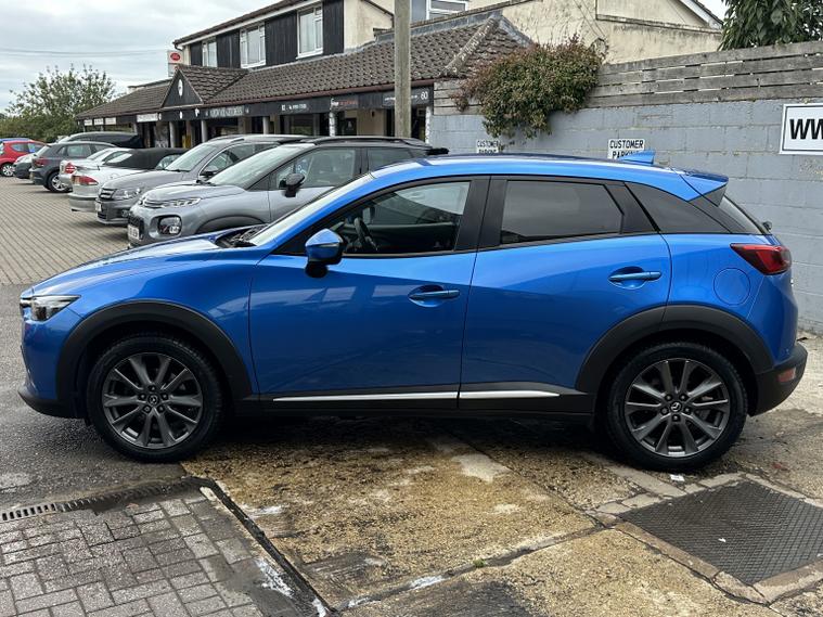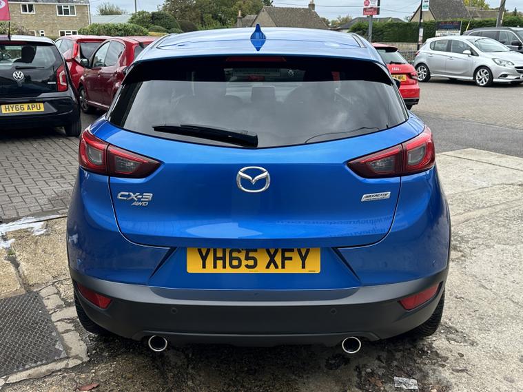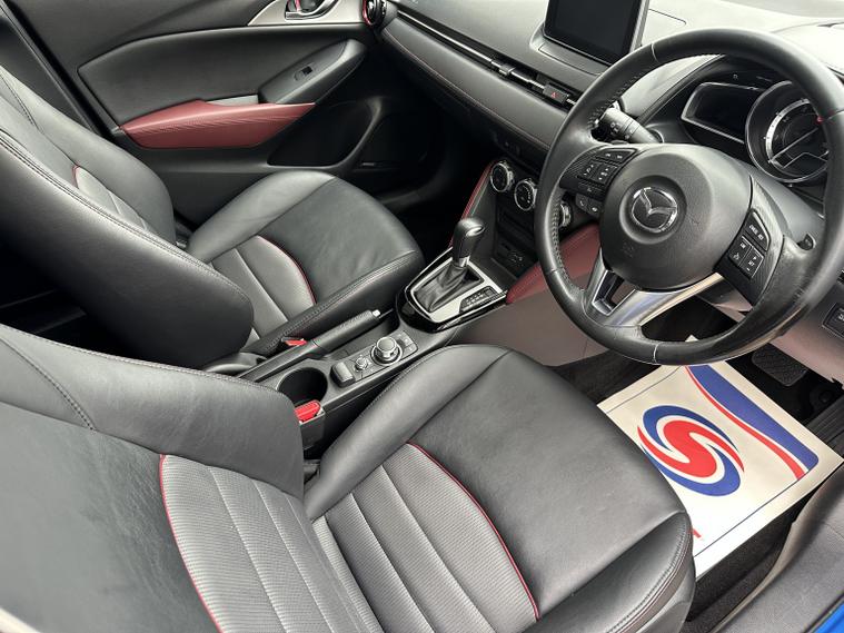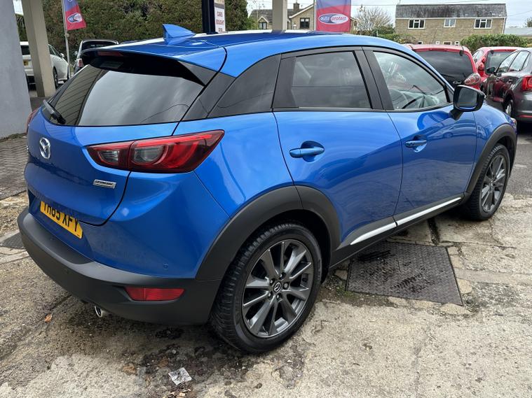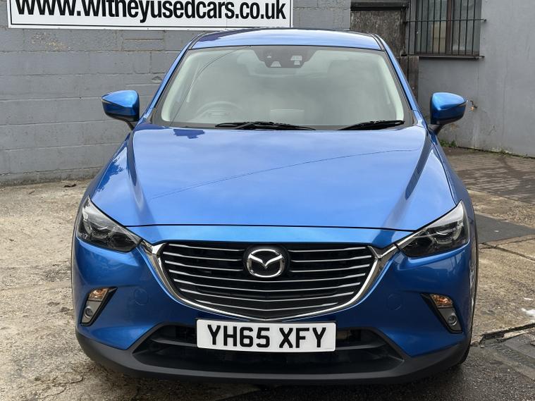 FANTASTIC CONDITION MAZDA CX-3 IN ELECTRIC BLUE WITH HALF LEATHER INTERIOR. Looks very very clean and tidy with a great service history and a long list of features that include, electric windows front and rear, heated half leather front seats, multifunction steering wheel with flappy paddle gear shift, cruise control, audio remote controls, Bluetooth hands free phone connectivity, music streaming, usb aux, colour touch screen sat nav, electric adjustable heated and folding wing mirrors, reversing camera, alloy wheels, parking sensors front and rear, heads up display, lane assist, automatic lights and wipers, AM/FM/DAB radio cd player with BOOSE sound system, air conditioning and much more. Truly a very well appointed Mazda with a great history and a fresh MOT until October 2026. 3 months parts and labour warranty included that can be extended to 12 months for only 199 and finance is also available on request. Please call 01993792512 for more details or to arrange a viewing.