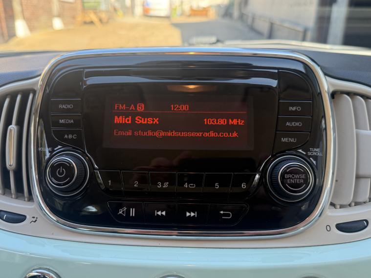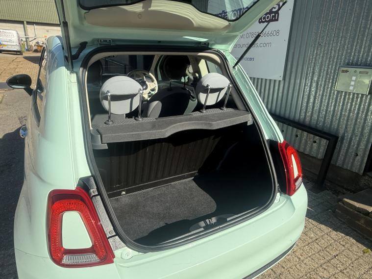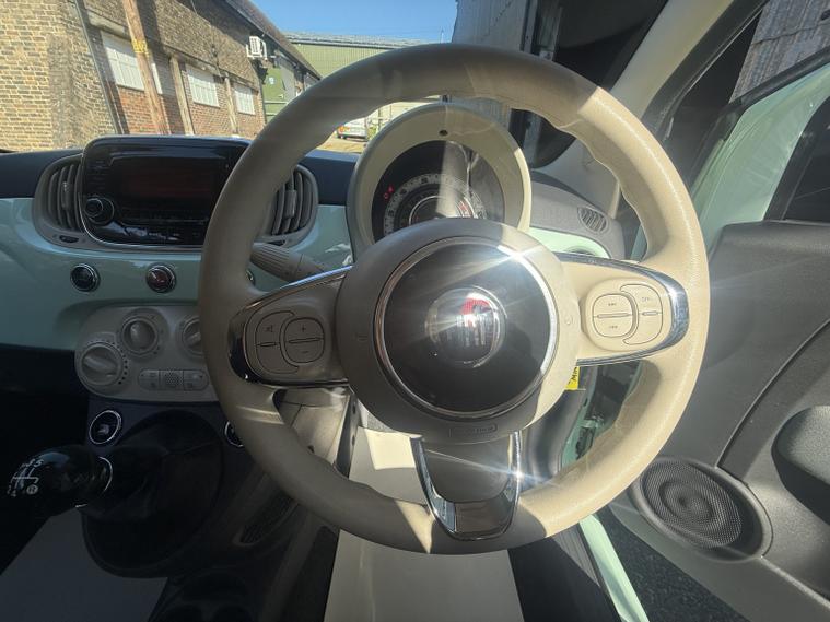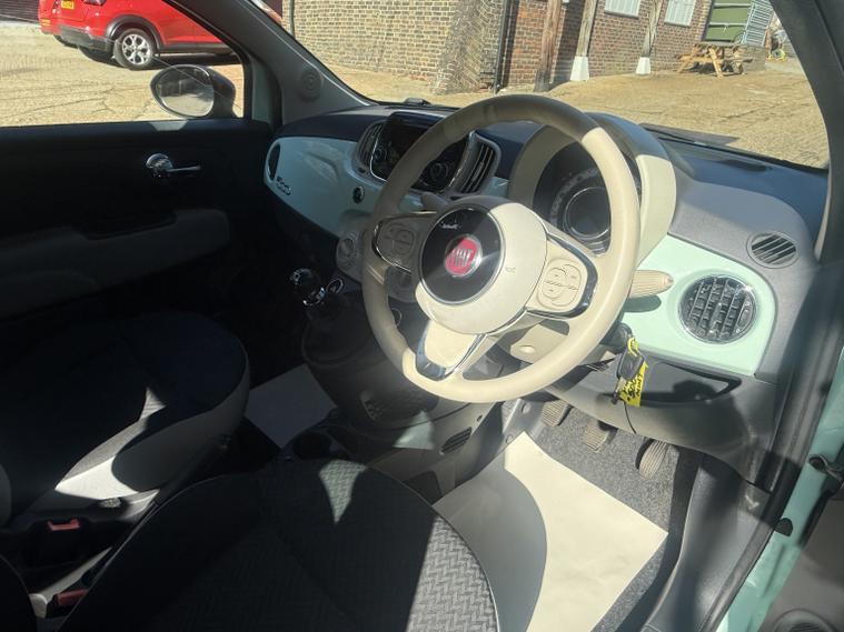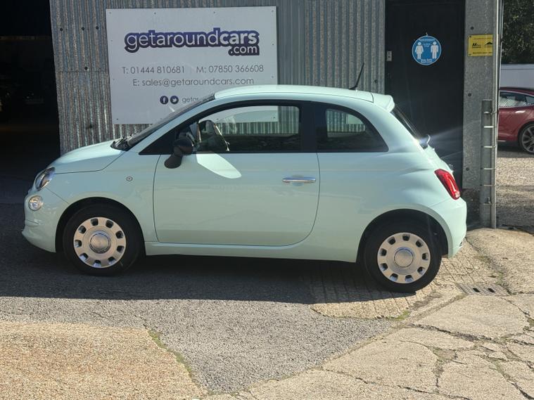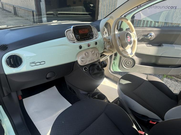 getaround in this lovely 1.2 petrol 500 from Fiat. This 5-speed manual pop model; looks great finished in smooth mint green with contrasting dark cloth interior. It has a good spec that includes electric windows, remote locking, DAB radio and cruise control. the car has a comprehensive service history and a long MOT. It comes with the owners book pack, fully stamped service booklet, two keys and clear HPi certificate. Phone, text or email for an appointment to view this great looking ulez compliant hatchback soon.