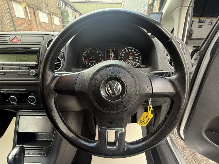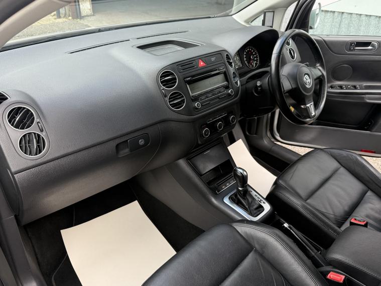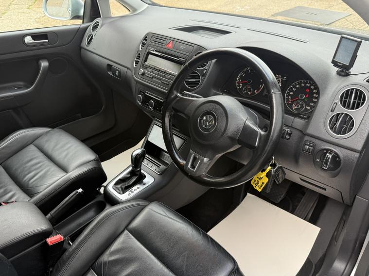Getaround in this ultra low mileage 1.4 petrol Golf Plus from Volkswagen. This automatic SE example looks great finished in metallic silver with contrasting full black leather interior. The car has a great spec that includes front and rear parking sensors, heated seats, Hands-free phone prep, cruise control, alloy wheels, electric windows and air-conditioning. It has an impressive service history that is made up no less than 14-dealer stamps and a long MOT. It comes with the owners book pack, fully stamped service booklet, two keys, locking wheel its d clear HPi certificate. Phone, text or email for an appointment to view this rare automatic hatchback soon.