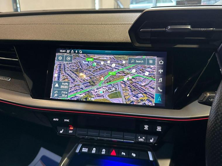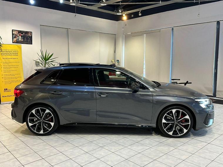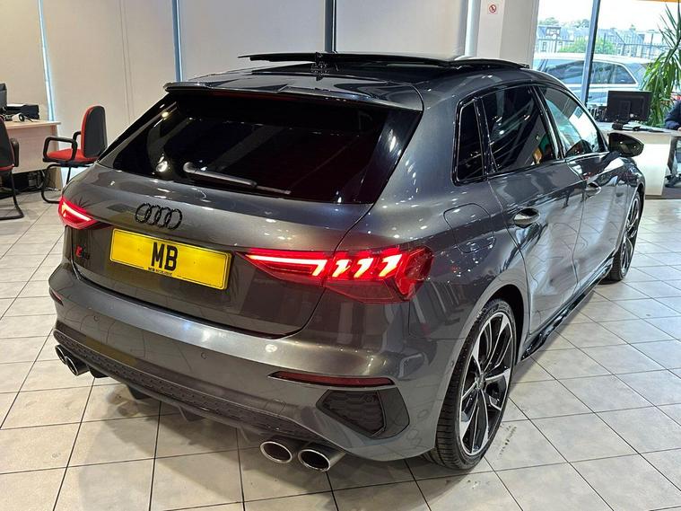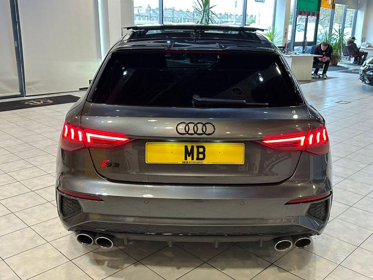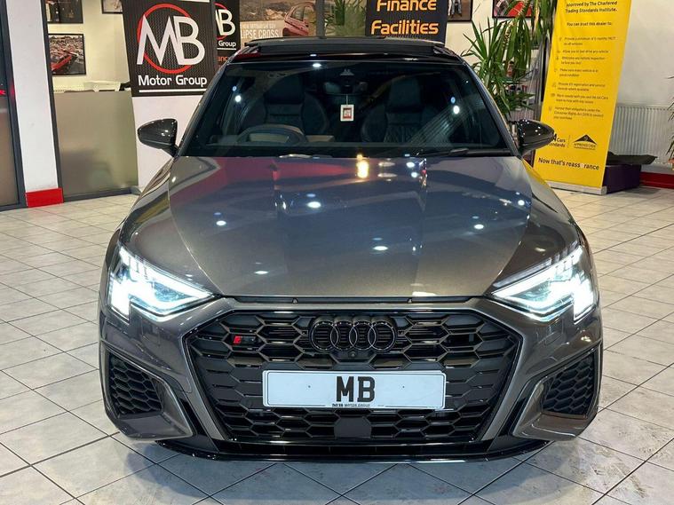 This 2023 Audi S3 TFSI Vo sprung offers an exhilarating driving experience with its impressive 0-62mph acceleration in just 4.8 seconds. This four wheel drive model is powered by a 2.0 litre petrol engine and meets Euro 6 emission standards. The Vo sprung trim level comes equipped with the Technology Pack Pro, which includes LED headlights, keyless entry, an opening panoramic sunroof, front and rear parking sensors, a rear camera, a premium branded sound system, heated seats, and wireless phone charging. Further enhancing its appeal are the Head Up Display, dual zone electronic climate control, and a light and rain sensor for automatic headlights. The Audi S3 TFSI Vo sprung also boasts a 360 degree camera system, providing exceptional all round visibility for effortless parking and manoeuvring. This advanced feature, along with the other notable equipment, demonstrates how this vehicle offers a superior experience compared to similar models. Practicality is not overlooked, with a large boot space providing ample room for luggage or shopping. The specification and technical details in this advert are pulled through from a third-party source. MB Motor Group therefore cannot guarantee or warrant the accuracy of this information. We therefore kindly ask customers to check the specification of their chosen car to ensure it meets all of their requirements prior to purchase.