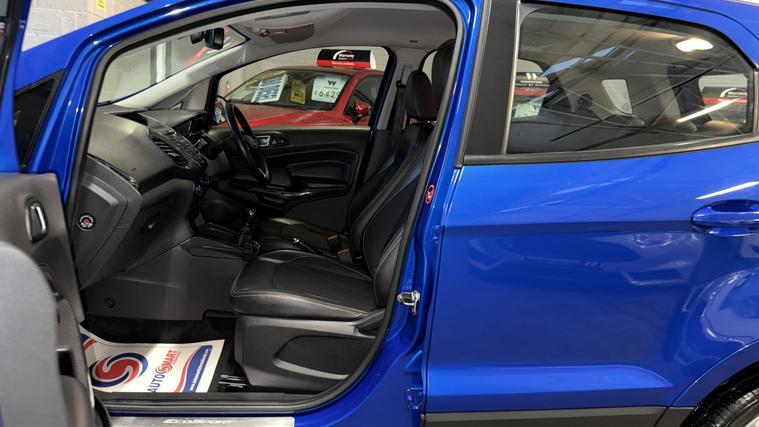 Ward Motors Leeds Used Cars Leeds are pleased to offer this Ford Ecosport 1.0 T EcoBoost Titanium Blue 5dr, the car is in excellent condition throughout. Perfect colour combination and a great specification too including Part Leather Interior, Heated Seats, Cruise Control, Bluetooth, DAB radio, Heated Front Windscreen, Drivers Adjustable Armrest, Parking Sensors, Voice Command, Climate Control, USB point, AUX point, alloy wheels, ISOFIX and much much more. The car will be supplied with 2 keys, an MOT until September 2026 and an up to date service history including 11 service stamps. FINANCE NOW AVAILABLE!! FREE 3 months national cover warranty with all purchases, 500 per claim with the option to up this limit to 1, 000 per claim for only 59! Peace of mind package offer 12 months national cover warranty including breakdown cover now on offer for only 399*. WE OFFER DELIVERY Nationwide Delivery is available 7 days a week, ask for a quotation now! Finance now available same day drive away, we are now closely teamed up with Close Motor Finance, CarFinance247 and CarLoan2Day for you finance needs. We also work with Zuto, Carloans365, CarloansUK and many more outside brokers. Reserve now for only 99! Pop down and see the team at Ward Motors Leeds Used Cars Leeds located in Armley LS12 opposite Armley Park Main Entrance. Browse, Try, Buy DISCLAIMER: The above listed specification is true and correct. Any other specification listed elsewhere can sometimes be incorrect. Please check with the team to clarify this if needed prior to any purchase. Ward Motors Leeds do not warrant or re gas air conditioning hence why we do not advertise any of our cars/vans with AC/air conditioning. *Warranty 499 on 4X4 and engines above 2.2 litre.