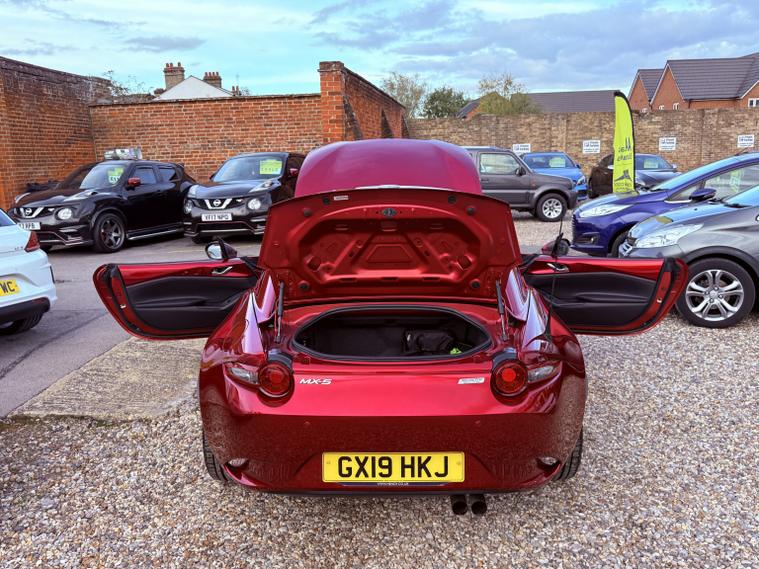 Sporty 2019 Mazda MX-5 Sport Nav+ RF, 2.0 Petrol With 184BHP, 6 Speed Manual, 2 Door Cabriolet With Electric Folding Hard Top, Finished In The Stunning Soul Red Crystal With Contrasting Graphite Alloy Wheels, Great Spec Including Full Black Leather Interior With Heated Front Seats, Sat Nav, DAB Radio With USB Connectivity & Powerful Bose Speaker System, Bluetooth, Climate Control Air Con, Automatic Lights & Wipers, Lane Departure Warning, Electric Windows & Door Mirrors, Rear Parking Sensors With Visual Display, LED Headlamps With LED Day Time Running Lamps, Keyless Entry & Push Button Start, 17 Inch Alloy Wheels & More, Full Mazda Main Dealer Service History, Only 1 Owner From New, Supplied With 2 Keys, 3 Months Engine And Drivetrain Warranty With Options To Extend, ULEZ Compliant, Finance Available, HPI Clear, AA Approved Dealer, 12 Months Breakdown Cover Free Of Charge, Driveaway Insurance Available, All Of Our Cars Are Supplied With A Workshop Inspection Including MOT & Service If Required Plus A Full Valet, Debit Card Payments Accepted, FCA Regulated Dealer, No Admin Fees, Part Exchange Welcome, Delivery Can Be Arranged For An Additional Fee, Sunday Viewings Available By Pre Arranged Appointments, dealer's website Please Note We Also Offer A Wide Range Of Mx-5 Tuning & Modifications From Our Good Friends At BBR And MX5 Parts, Please Ask For More Details.