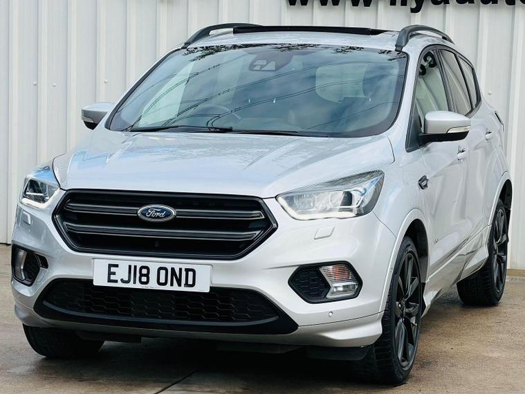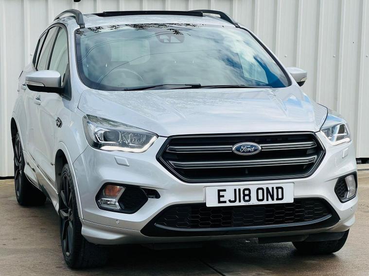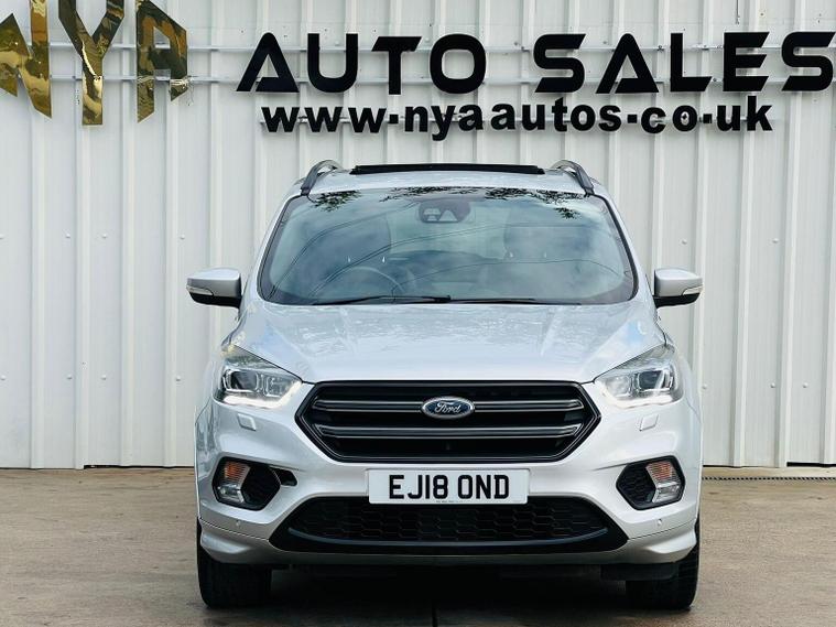 This Ford Kuga ST-Line X is an absolutely immaculate example, in excellent condition throughout and very well maintained, with no dents, scratches, or marks the bodywork is flawless. It comes with a full service history, has been recently fully serviced, and includes a long MOT valid until October 2026, providing complete peace of mind. Finished in a stunning colour, this ST-Line X full package model combines style, comfort, and performance perfectly. It features ST-Line alloy wheels and sport styling enhancements for a striking road presence. As the top-of-the-range ST-Line X model, its packed with high-end features such as a panoramic roof, full leather and suede interior, electric memory seats, heated front seats, ambient interior lighting, reversing camera, Park Assist, power tailgate, and an advanced infotainment system with satellite navigation offering an exceptional driving experience. Powered by the robust and efficient 2.0 TDCi Euro 6 engine, paired with the smooth Powershift automatic gearbox and All-Wheel Drive system, this Kuga delivers strong performance, reliability, and comfort on every journey. The vehicle comes with two keys, three months free warranty, and 12 months free AA breakdown cover for added reassurance. We are a five-star rated dealership, known for our quality vehicles and outstanding customer service. Please do not hesitate to contact us for more details or to arrange a viewing this Kuga ST-Line X truly is a superb example that must be seen to be appreciated.