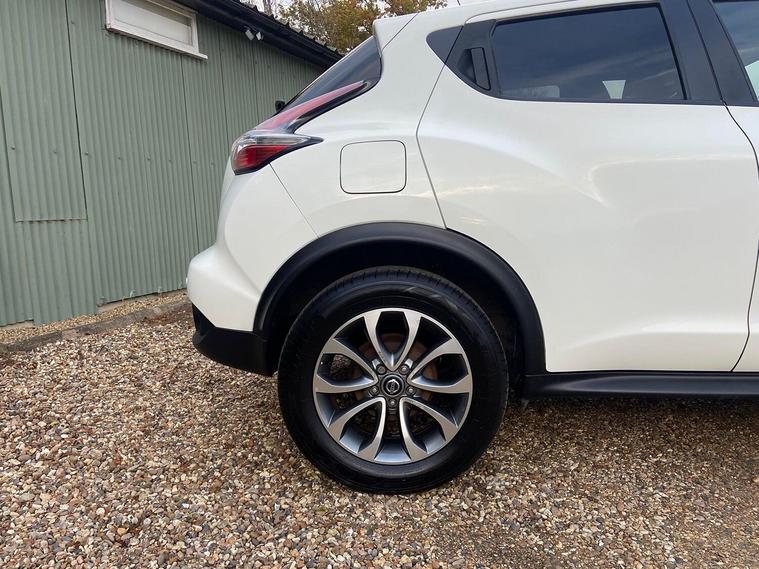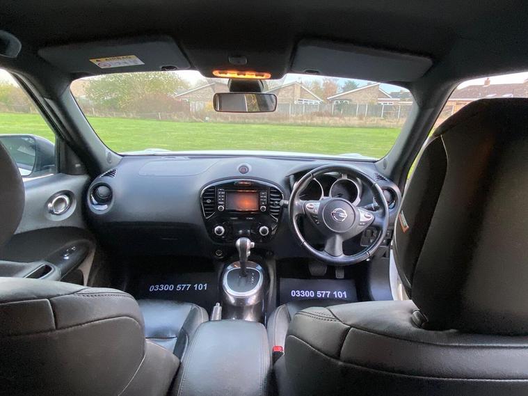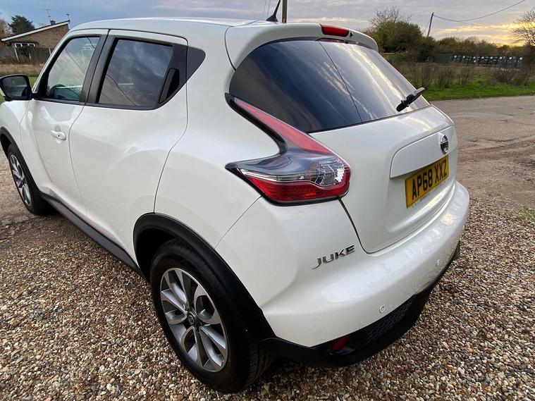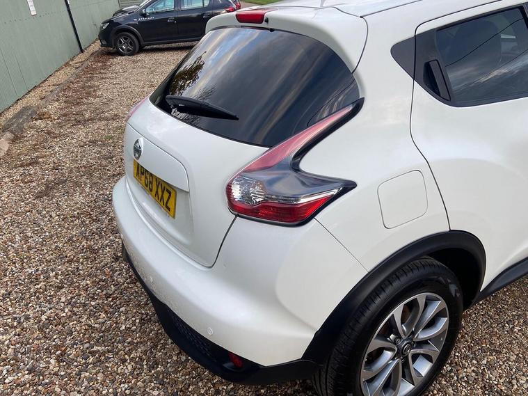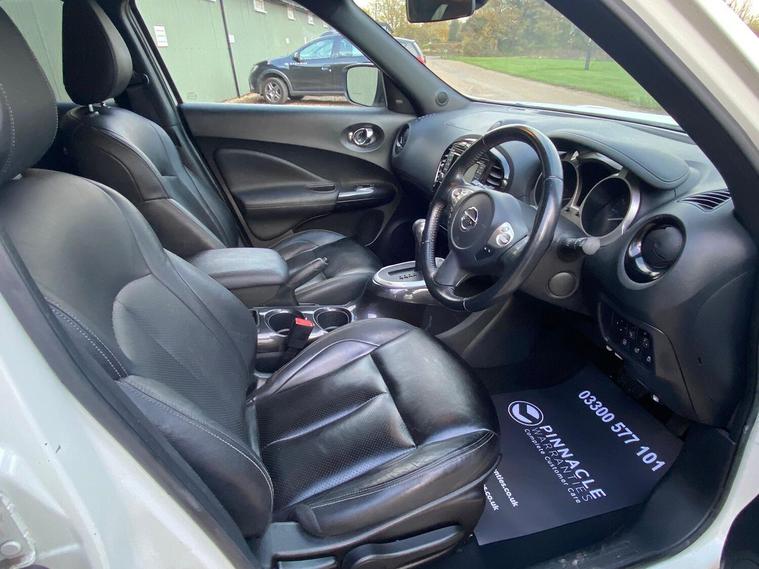 2019 (68) Nissan Juke 1.6 Tekna Automatic Only 59, 299 Miles 2 Owners Stunning White, Stylish, practical, and packed with tech this 2019 Nissan Juke 1.6 Tekna Auto is the perfect compact SUV for those who love comfort and convenience. Key Features:, 1.6 Petrol Automatic smooth and reliable drive, Only 59, 299 miles, Two owners from new, Finished in stunning White, High-spec Tekna trim, Top Specification Includes:, Full leather interior, Heated front seats, Satellite navigation with colour touchscreen, Reverse camera + 360 Around View Monitor, Bluetooth connectivity & DAB radio, Keyless entry and start, Cruise control & speed limiter, Climate control, Alloy wheels & privacy glass, Parking sensors, This Juke has been well cared for and maintained, drives beautifully, and offers a perfect balance of efficiency, performance, and comfort. Ideal for city driving or long trips alike. Competitive finance options available, Part exchange welcome, Available now from an AutoTrader-approved dealer