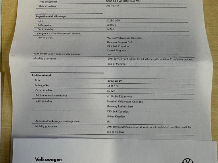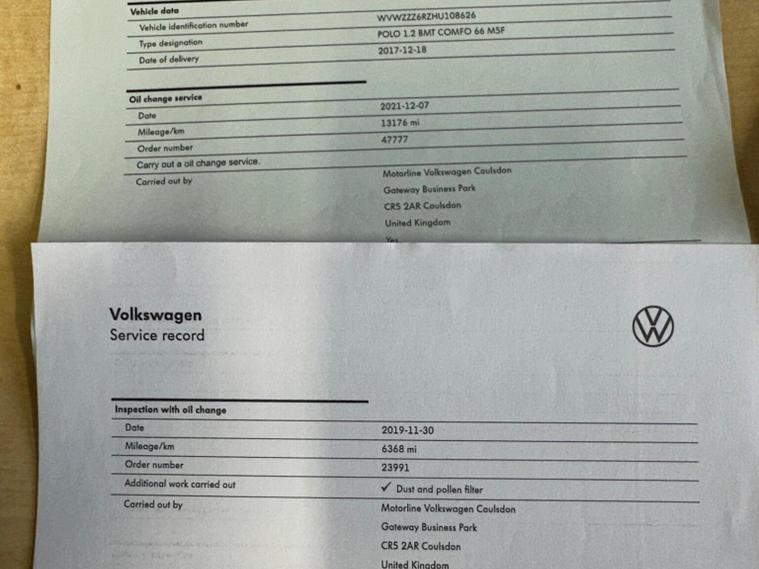 Ready to drive away today Volkswagen Polo 1.2 TSI BlueMotion Tech Match, one owner from new, great service records all full documented with receipts, looks great in solid white paint, 15 alloy wheels, front and rear parking sensors, low tax and insurance group. Interior boats some nice features, leather multifunction steering wheel, cruise control, electric windows front and rear, touchscreen multimedia with Bluetooth connectivity, apple car play/android mirror, folding mirrors. 2 keys, buy with confidence from an award winning, AA Approved dealership with a variety of warranty products available. Viewing available seven days a week by appointment (evening and weekends available), nationwide delivery. Same day finance decisions in house at competitive rates, nil deposit options, please inquire with a simple call to drive away today. Drive away insurance, part exchange welcome, top prices paid. Member of the Motor Trade trading standards and motoring ombudsman code of practice