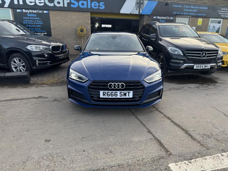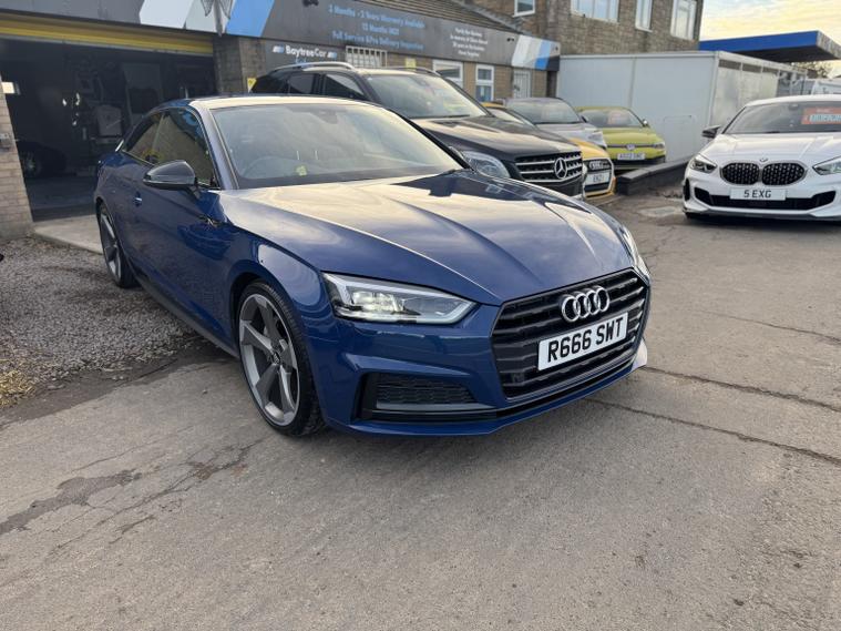 , Audi A5 2.0 TDI 40 Black Edition, Finished in Ascari Blue Metallic (Auto) | 65, 000 miles, Only 15, 695, Welcome to the sale of this stunning Audi A5 one of the rare 2019 Black Edition Launch Models. A truly exceptional example with just 65, 000 miles from new and a **full Audi main dealer service history (6 stamps)** including a recent **gearbox service and flush**. This car drives superbly and looks fantastic, sitting on branded tyres all round (56mm of tread). **Specification highlights:**, Black Edition styling package, Factory rear spoiler, 20 5-Arm Rotor Alloy Wheels, LED front and rear lights, High-beam assist, Factory privacy glass, Gloss black inlays and trim accents, Smooth 2.0 TDI 40 engine with S tronic automatic gearbox, Beautifully presented in Ascari Blue Metallic a colour that truly sets this example apart. ---, Because we are an RAC-approved dealer, this vehicle includes:, Free RAC breakdown cover, Free RAC history check, 12 months MOT, Full pre-delivery service, Nationwide delivery is available. Call **01406223583** for more information (even out of hours). Please also feel free to contact us outside of hours to discuss this vehicle further.