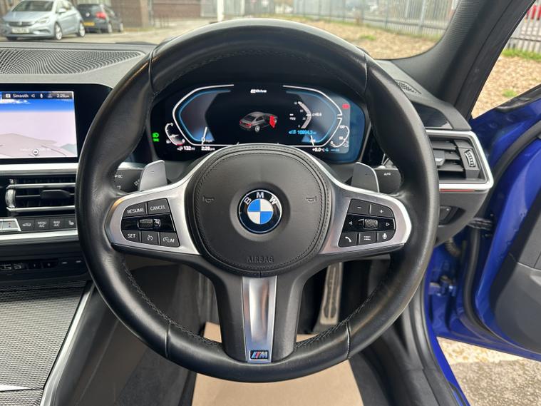 BMW 3 series 2.0 330e M Sport saloon, we are extremely pleased to offer this vehicle for sale, absolutely stunning both inside & out, the car drives amazing, HPI Clear, 2 x Keys, Part Exchanges Welcome, Finance available, service history, services at 17k, 25k, 28k, Full safety, 12 months MOT and a fresh service prior to collection, this car has 3500 with of optional extras which includes, M Sport pro package, 19in diamond cut Alloy Wheels - M Light Double Spoke - 791M, portimao blue paint, sun protection glazing, full spec includes, front and rear parking sensors, reversing camera, full leather heated seats, touchscreen satellite navigation, cruise control / speed limiter, dual climate control, digital dash, sport mode, automatic lights / wipers, DAB radios, Bluetooth with voice control, Apple car play / android auto, rear climate control , Smoke & Pet Free, 3 Months Warranty & 12 Months AA Breakdown cover as Standard. Nationwide delivery can be arranged, Available to view & test drive now we are located 20 minutes from junction 31 of the M1. Request a personalised video today, checkout our reviews to give you the reassurance that you would be buying your next new vehicle from a dealer that actually cares about its customers and the service we provide, drive away within the hour with our 5 Days drive away insurance option STC.
