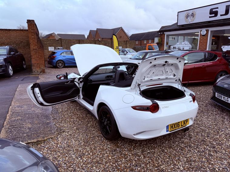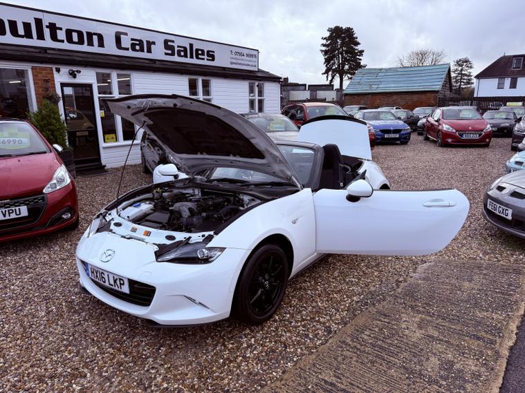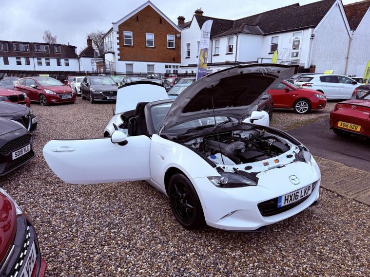 Very Well Maintained 2016 Mazda Mx5 SE, Fun & Economical 1.5 Petrol, 6 Speed Manual, 2 Door Cabriolet, Finished In Arctic White With Contrasting Gloss Black Alloy Wheels & Subtle Body Styling, Good Spec Including Radio With USB Connectivity, Air Con, Electric Windows & Door Mirrors, Keyless Push Button Start, Remote Central Locking, LED Headlamps, Day Time Running Lamps & More, Full Mazda Main Dealer Service History (Serviced @ 4, 8, 12, 21, 34, 43, 50 & 58, 000 Miles), Only 2 Owners From New (Same Keeper Since 08/04/2019), Supplied With 2 Keys, 3 Months Engine And Drivetrain Warranty With Options To Extend, ULEZ Compliant, Finance Available, HPI Clear, AA Approved Dealer, 12 Months Breakdown Cover Free Of Charge, Driveaway Insurance Available, All Of Our Cars Are Supplied With A Workshop Inspection Including MOT & Service If Required Plus A Full Valet, Debit Card Payments Accepted, FCA Regulated Dealer, No Admin Fees, Part Exchange Welcome, Delivery Can Be Arranged For An Additional Fee, Sunday Viewings Available By Pre Arranged Appointments, dealer's website Please Note We Also Offer A Wide Range Of Mx-5 Tuning & Modifications From Our Good Friends At BBR And MX5 Parts, Please Ask For More Details.