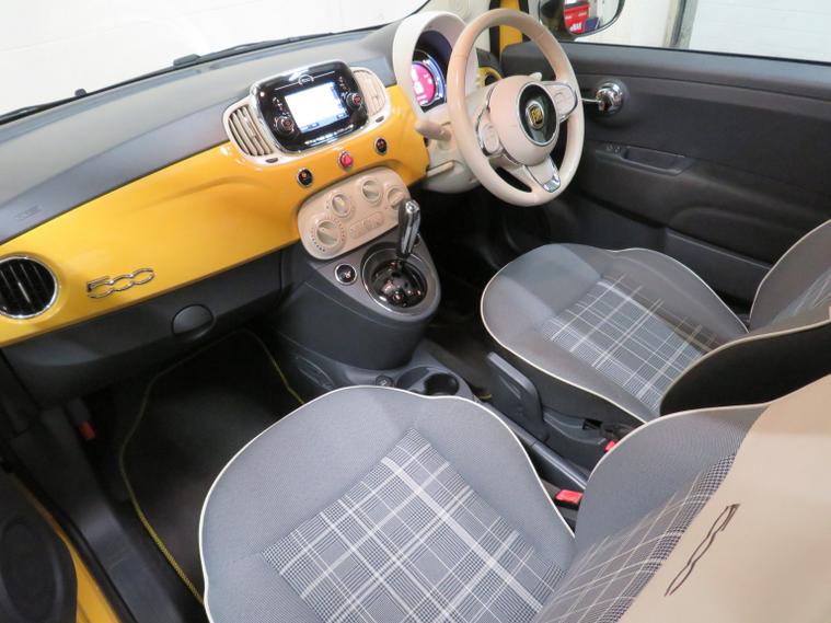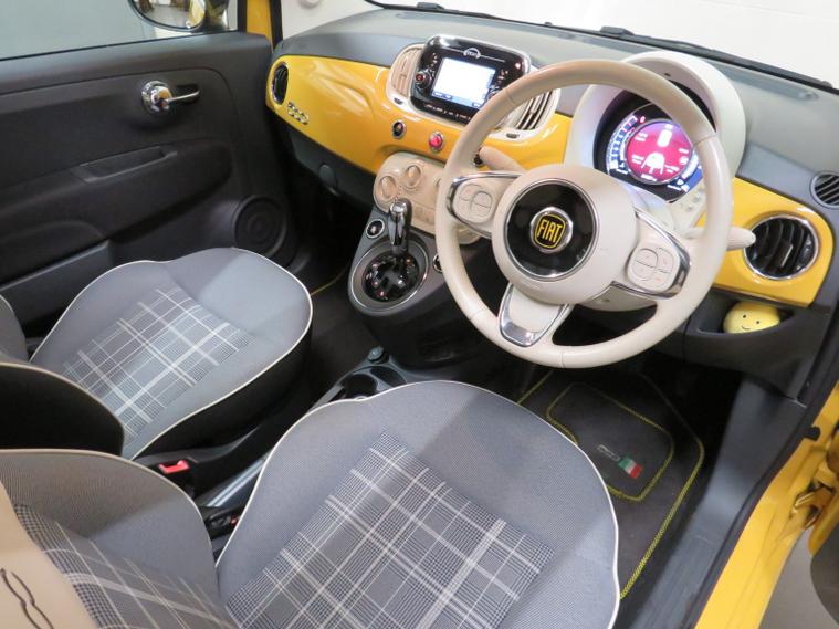 Arrow Motor Company are pleased to present this fantastic Fiat 500 Lounge Automatic, finished in the stunning Ocra Yellow Paintwork, with Black Cloth Interior with Yellow Plaiting. Equipped with Fiats 1.2-Litre Petrol engine producing 69bhp, whilst providing the most economical of drivers with an incredible 62.8mpg, with potential to rise to 70.6mpg in Extra-Urban environments. This Particular Example is Complimented by a (FSH) Full Service History only 20 Road Tax. This vehicle also benefits from the following impressive list of features below. , . Interior Features... Satellite Navigation System | 5 Inch Digital Multimedia Touch Screen Display | Rear Parking Sensor Display | Electrically Opening Sun Roof Controls with Blind | Surround Sound Speaker System | Voice Command | Bluetooth Media | Radio DAB | City Driving Mode | Air Conditioning | AUX Port | USB Port | Electric Front Windows | Electrically Adjustable Wing Mirrors | 12v Port | Multifunctional Trip Computer | Full Cream Leather Chrome Accented Multifunctional Steering Wheel | 2x Adjustable Black, Grey and White Cross Hatched Front Seats | Chrome Lined Air Vents | Gloss Yellow Dash Board | Yellow Stitched 500 Branded Dash Board | 4x Cup Holders | Illuminating Passenger Vanity Mirror |, Exterior Features, Electrically Operated Sunroof | Rear Ultrasonic Parking Sensors | LED Day Time Running Lights | Rear Privacy Glass Chrome Lined Front Grill | Black 500 Livery | Gloss Black Wing Mirrors | Chrome Lined Window | Shortened Aerial Antenna | Chrome Lined Rear Bumper | Chrome Lined Boot Lip | Heated Rear Window | Chrome Exhaust Tip |