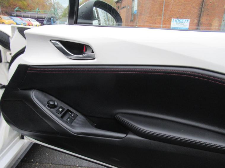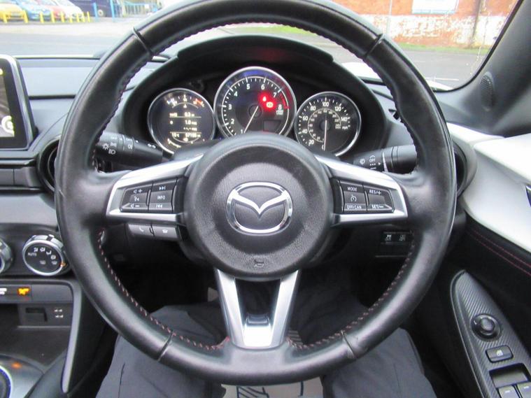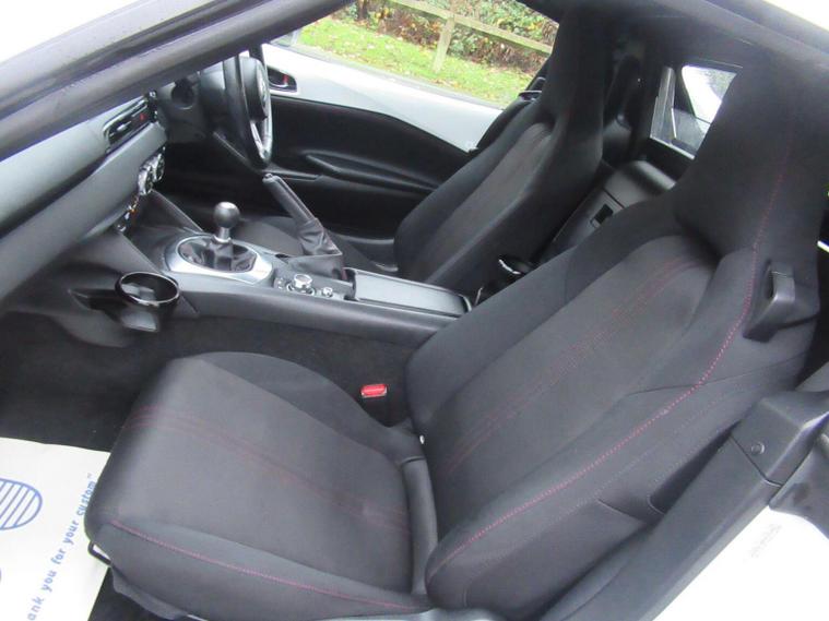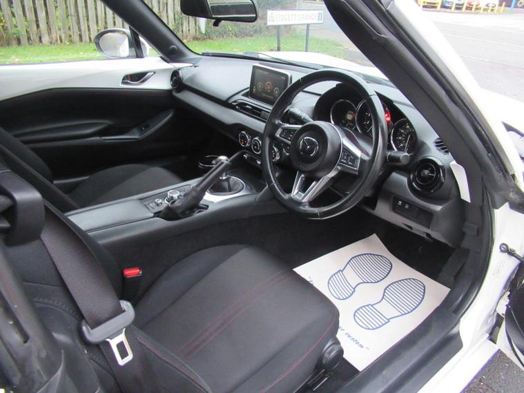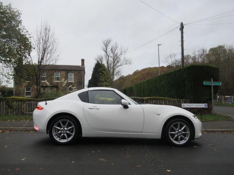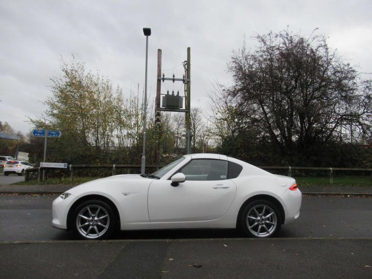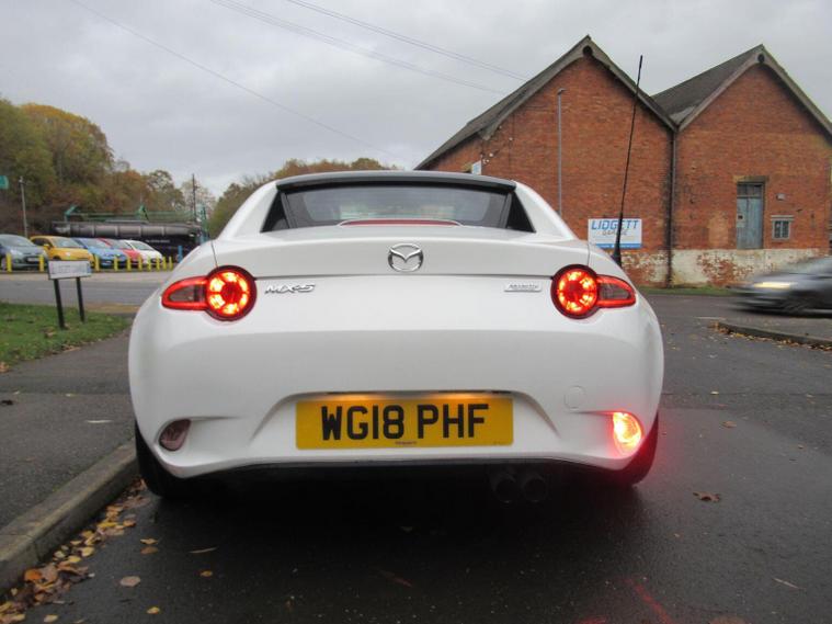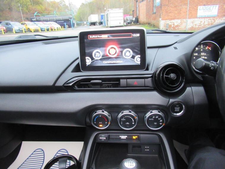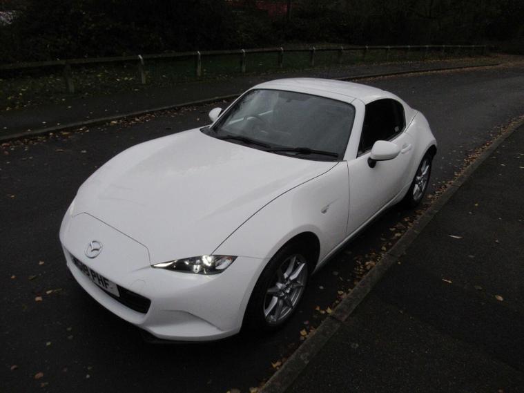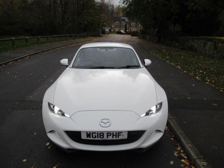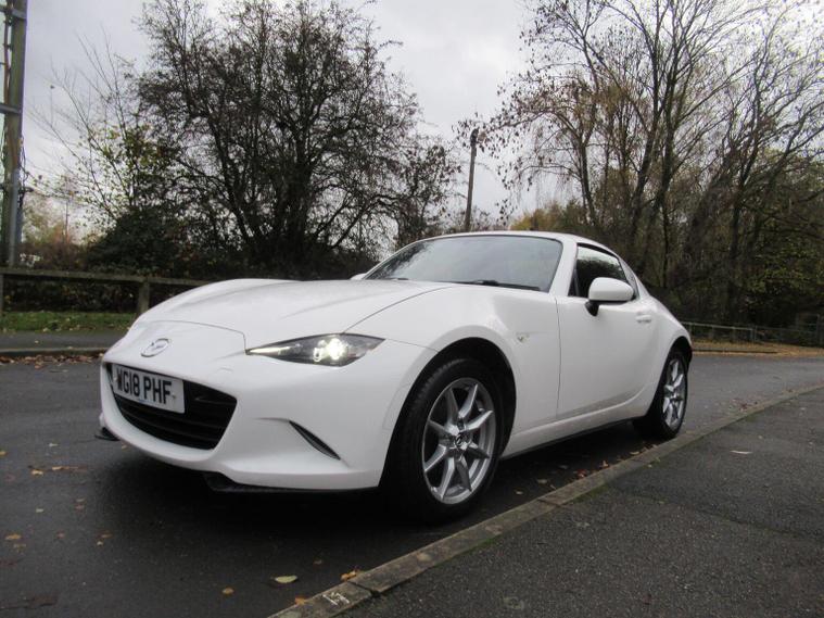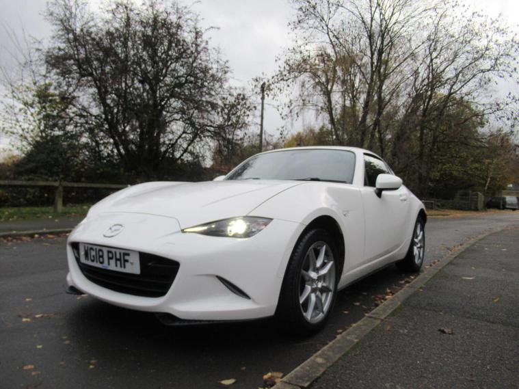 This 2018 Mazda MX-5 RF SKYACTIV-G SE-L Nav is presented with a full 12 months MOT for your peace of mind. This stylish convertible features a responsive 1.5 litre petrol engine and is a Euro 6 compliant model. Inside, youll find integrated Bluetooth for seamless connectivity, and climate control air conditioning to ensure your comfort on every journey. The LED headlights with auto levelling provide excellent visibility, enhancing both safety and the cars modern aesthetic. Experience impressive efficiency with this MX-5 RF, achieving a notable 46 miles per gallon, which is better than many comparable vehicles. Its low CO2 emissions further contribute to its economical running costs. This SE-L Nav trim offers a refined driving experience, combining Mazdas renowned driving dynamics with practical features for everyday use.