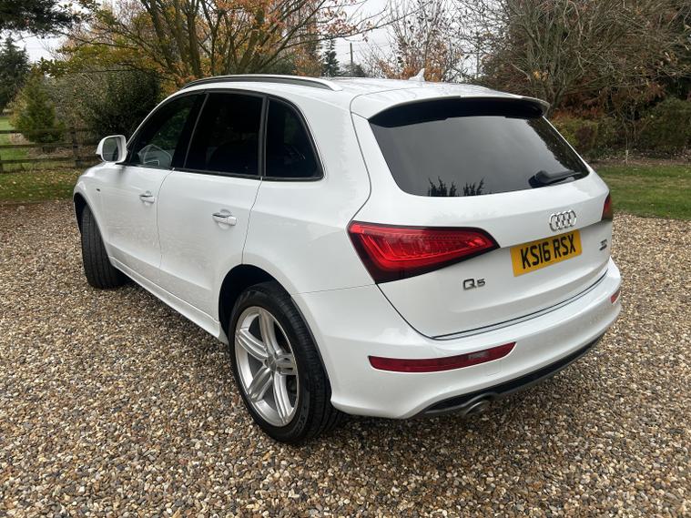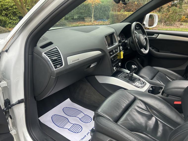 THIS STUNNING 1 FORMER KEEPER AUDI Q5 2.0 TDI S LINE PLUS, QUATTRO COMES IN Glacier white metallic WITH Black Fine Nappa leather S line Sports seats. IT COMES WITH AN INCREDIBLE SPEC INCLUDING AN Open sky panoramic sunroof, POWER BOOT, SATNAV, HEATED SEATS AND Bang & Olufsen Sound System. THE LAST OWNER HAS OWNED IT SINCE 2017. IT COMES WITH SERVICE HISTORY, JUST SERVICED AND MOTD. THE CAMBELT WAS REPLACED IN 2022. Excellent bodywork, Black Full leather interior - Excellent Condition, Four wheel-drive, 5 seats, Glacier white, metallic, 2 owners, Upgrades - Panoramic Sunroof - Open Sky, Bang and Olufsen Sound System, Black Fine Nappa leather S line Sports seats, Standard Features - 12V Power Socket, 20GB Jukebox for Storing and Managing Music Files - WMA and MP3 Format, 20in Alloy Wheels - 5-Segment-Spoke Design, ABS - Anti-Lock Braking System, AMI - Audi Music Interface, Acoustic Windscreen, Air Conditioning - Deluxe Automatic at the Rear, Airbags - Driver, Airbags - Front Passenger, Airbags - Front Side, Alarm - Thatcham Category 1, Aluminium Roof Rails, Amplifier - 180 Watt, Amplifier - 6 Channel, Anti Theft Locking Wheel Bolts, Audi Parking System Plus, Audi Sound System, Auto-Dimming Rear-View Mirror, Automatic Headlight Range Adjustment, Automatic Wipers with Rain Sensor, Body Coloured Bumpers, Bumpers - S line Front, Car Jack, Chrome Tailgate Strip, Cloth Headlining in Black, Colour Drivers Information System - DIS, Concert Radio - MP3-CD Player, Cruise Control, Cup Holders - Centre Console, DAB Digital Radio, Deluxe 3-Zone Climate Control, Diffuser - Platinum Grey, Display Screen Colour - 7in TFT High Resolution and Split Screen Mode for Route Information, Door Handles - Chrome, Door Mirrors - Electrically Adjustable and Heated, Door or Boot Open Warning, Dynamic Route Guidance - TMC, EBD - Electronic Brakeforce Distribution, ESP - Electronic Stability Programme, Electric Windows - Front and Rear, Electrically Adjustable 4-Way Lumbar Support, Electromechanical Parking Brake, Electromechanical Power Steering, European Navigation Data, Exhaust Tailpipe - Chrome Trimmed - Flat-Bottom Design on Left Side, First Aid Kit, Front Centre Armrest, Front Fog Lights, Front Passenger Airbag Deactivation Switch, Front and Rear Floor Mats, Hard Drive - 40GB, Headlight Washers, Headlights - Coming-Leaving Home Function, Headlights - Light Sensor, Headlights - Xenon, Hill Descent Control, ISOFIX Child Seat Mounting for Front Passenger, ISOFIX Child Seat Preparation for Rear Seats with Top Tether, Inlays - Matt Brushed Aluminium, LED Daytime Running Lights, LED Rear Lights, Leather Package - Door Armrests, MMI Navigation Plus, Misfuelling Inhibition, Mobile Telephone Preparation - Bluetooth Interface, Outside Temperature Display, Pollen Filter, Power Operated Tailgate, Privacy Glass, Radiator Grille - S Line with Chrome Vertical Bars, Rear Parking Sensors, Rear Spoiler - Body Coloured, Remote Boot Release, Remote Central Locking, Rest Recommendation System, Roof Bars and Storage Bag, S Line Badges on Front Wings, S Line Side Skirts, S line Rear Diffuser, S line Sill Plates and Aluminium Loading Strip for the Boot, SD Card Reader x2, Seats - Front Height Adjustment, Seats - Front with S line Embossing, Seats - Split Folding Rear - 60-40, Seats - Sports, Single CD-DVD Player, Speakers x10, Steering Column - Rake and Reach Adjustment, Steering Wheel - Multi-function, Steering Wheel - S Line 3-Spoke Leather, Styling Package - S line Exterior, TP Memo - Automatically Saves Traffic News, Tailgate - Lid Closing Assistance Unit, Tailgate - Programmable Angle for the Luggage Compartment Lid, Technology Package, Tool Kit and Car Jack, Towing Equipment - Preparation, Traction Control, Tyre Pressure Loss Indicator, Tyre Repair Kit, Warning Triangle, Window Surrounds - Aluminium, ALL CARS COME WITH WARRANTY, FINANCE AND PART EXCHANGES WELCOME, ALL VIEWINGS BY APPOINTMENT, 11, 495