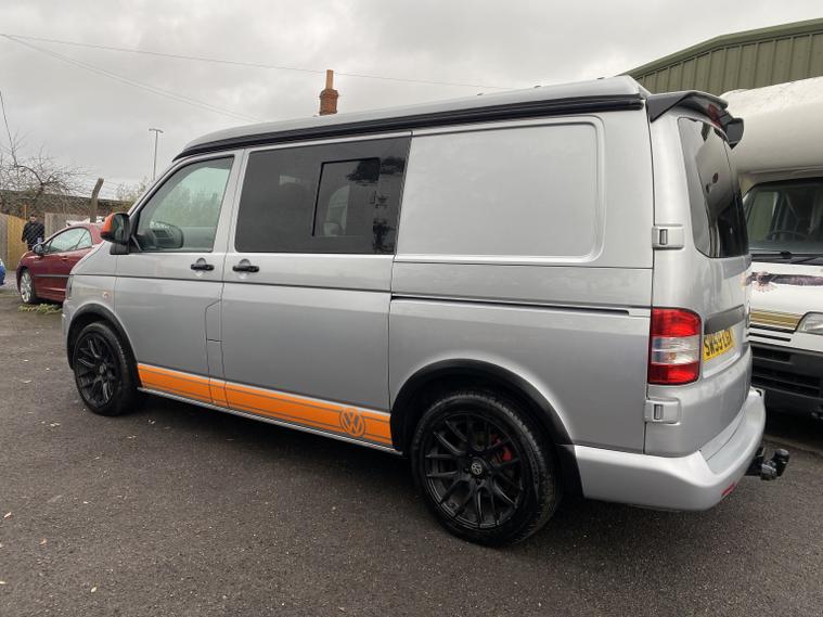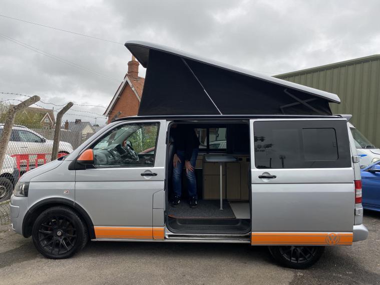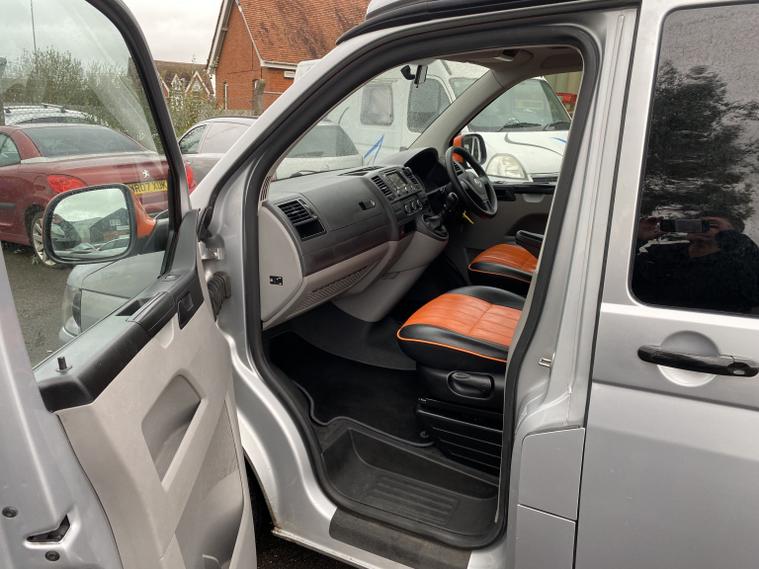 Volkswagen Transporter T28 2.0 TDi Motor Caravan in Reflex Silver, 168538 miles with a comprehensive service history including a cam belt change and a new gearbox clutch and flywheel. MoT until 6th July 2026, Specification includes Black alloy wheels - Air conditioning - Electric windows and mirrors -Central locking -Leather seats - Pop up roof - Awning - Sink - Hob - Fridge - Rock and roll bed - Interior lights - Interior diesel heater - Window blinds and curtains - 240 Volt power socket - Removable table - Tow bar and a new gas bottle, Ready to use camper van in very good condition inside and out, For sale on behalf of a customer, 14995