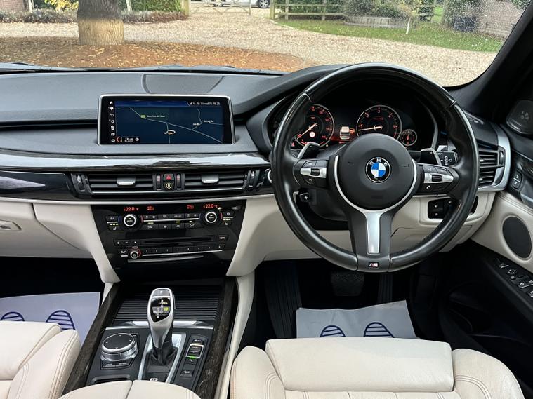 THIS STUNNING FULLY LOADED BMW X5 3.0 30D M SPORT AUTO XDRIVE COMES IN Black Sapphire Metallic WITH IVORY HEATED LEATHER SEATS. IT COMES WITH A MASSIVE SPEC INCLUDING 7700 OF FACTORY EXTRAS INCLUDING A PANORAMIC SUNROOF , HEADS UP DISPLAY, REVERSE CAMERA , DIGITAL COCKPIT, APPLE CAR PLAY, TOWBAR AND 21 ALLOYS WHEELS. IT HAS FULL BMW SERVICE HISTORY, SERVICED 10 TIMES IN TOTAL, RECENTLY SERVICED AND JUST MOTD. Full dealership history, Excellent bodywork, Beige Full leather interior - Excellent Condition, Four wheel-drive, 5 seats, Black Sapphire Metallic, Upgrades - M Sport Plus Package, 21in Alloy Wheels - M Double Spoke Style 559M, Panoramic Glass Sunroof, Head-Up Display, Loudspeaker System - Harman Kardon, Sun Protection Glazing, Digital Cockpit, Interior Trim - American Oak High Gloss, Speed Limit Display, Dakota Leather - Ivory White with Black Interior, TOWBAR 895, Apple CarPlay Preparation, APPLE CAR PLAY, Standard Features - 12V Power Sockets, 20GB HDD Memory, 20in Alloy Wheels - Light M Double Spoke Style - 469M, 40-20-40 Split Folding Rear Seats, Access to BMW Connected Plus (12 Month Subscription From New), Adaptive M Sport Suspension, Air Conditioning - Automatic with Two-Zone Control, Airbags, Alarm System - Thatcham 1 with Remote Control and Engine Immobiliser, Ambient Interior Lighting, Armrest - Front with Storage Compartment, Automatic Start-Stop Button, Automatically Dimming Rear View Mirror, Auxiliary Input Point for Auxiliary Playing Devices, BMW ConnectedDrive Online Services, BMW ConnectedDrive Services, BMW Emergency Call, BMW Professional Radio with Single CD Player - with MP3 Playback Compatibility, BMW TeleServices, Bluetooth Hands Free with USB Audio Interface, Brake Force Display, Check Control Warning System, Child Locking System - Rear Doors, Child Seat ISOFIX Attachment - Rear x2, Condition Based Service, Courtesy Lights - Front and Rear with Soft On-Off Dimming, Cruise Control with Brake Function, Cup Holders - Front and Rear, DAB Digital Radio, DSC - Dynamic Stability Control Plus, Deformation Zones - Front and Rear, Direction Indicator - Side Repeaters - Integrated in Exterior Mirrors, Door Handles - Body Colour, Door Handles with Downlights, Door Mirrors - Aspheric - Tinted - Heated - Electric Adjustment, Door Sill Finishers - M Designation, Driving Assistant, ECO PRO Mode, Electric Windows - Front and Rear, Electro-Mechanical Parking Brake with Auto-Hold Function, Exhaust Tailpipes - Single Left and Right - Quadrilateral - Chrome, Extended Storage, Exterior Trim - High Gloss Shadowline, Favourite Buttons, First Aid Kit and Warning Triangle, Floor Mats - Velour, Folding Side Mirrors with Auto-Dimming, Follow Me Home Headlight Function, Footwell Lights - Front with LED, Glove Compartment - Lockable and Illuminated, Head Restraints - Front and Rear, Headlining - Anthracite, High Level Third Brake Light, Incorrect Fuelling Protection System, Indicator Lenses - Clear, Instrument Binnacle with Speedometer - Tachometer - Fuel Level and Consumption, Interior Trim - Aluminium Hexagon, Kidney Grille - Chrome with Black Vertical Slats, LED Fog Lights - Front, Locking Wheel Bolts, Loudspeaker System - BMW Advanced, Luggage Compartment - Retractable and Removable Cover, M Aerodynamic Bodystyling, M Designation on Front Side Panels - Left and Right, M Leather Steering Wheel with Gearshift Paddles, M Sport Package, Navigation System - BMW Professional Multimedia, OBC - On Board Computer, Optimum Shift Indicator, PDC - Park Distance Control - Front and Rear, Personal Profile, Power Socket - 12V in Luggage Compartment, Power Socket - 12V in Small Folding Compartment in Centre Console, Power Sockets - Two 12V in Centre Console - Rear, Rain Sensor with Automatic Headlight Activation, Reading Lights - Front and Rear, Real Time Traffic Information, Remote Control - Integrated Key with M Designation, Remote Control Locking, Reversing Assist Camera, Roof Rails - High-Gloss Shadowline, Run Flat Tyres, Seat Adjustme