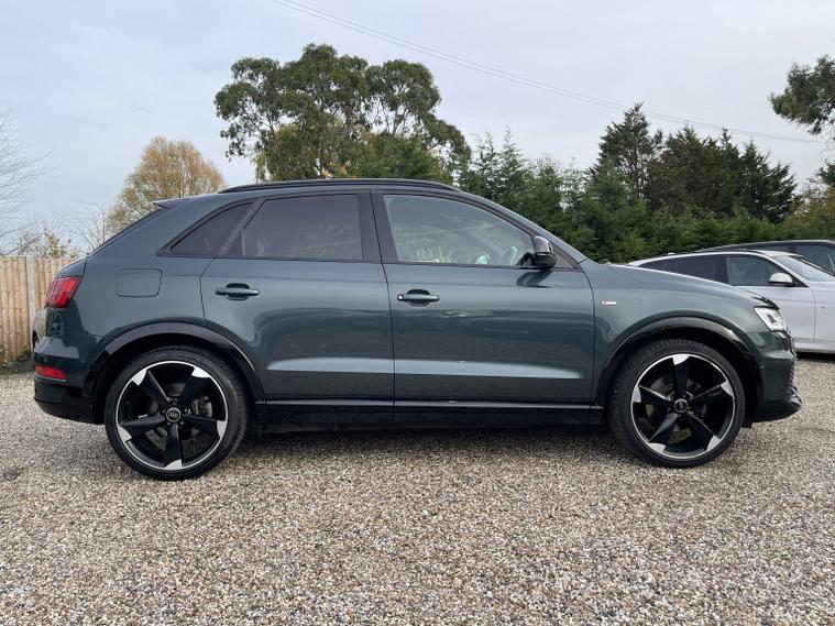 Essex Car Fleet are delighted to present this 2017 67 Audi Q3 2.0 TFSI Black Edition finished in Camouflage Green Metallic with black Nappa leather interior. Huge specification including, Satellite Navigation System, S Line Sports Suspension, BOSE Surround Sound System, Cruise Control, Flat-Bottomed 3-Spoke Perforated Leather-Trimmed Multifunction Steering Wheel-Contrast Stitching with Paddles, Audi Drive Select, Audi Parking System Plus, Power Operated Tailgate and bundles more. With our location based in Battlesbridge in Essex, Enjoy haggle-free buying experience where you can drive away the same day of prior arranged appointment. Please see our website for details. Call now or enquire online for a no-obligation test drive, finance quote or part-exchange valuation, 5 Star Dealer, Finance Available, Delivery Available, Part exchange Available, all cars are supplied with a 3 months warranty, 12 months MOT. Please call all a member of the team on 01268372176 and we will be delighted to help you move your enquiry forward 5 Star Dealer, Finance Available, Delivery Available. Our preparation team have inspected to the highest level possible for the age and mileage of vehicle, You can rest assured your car has been cared for to our highest Standard. With our location based in Battlesbridge in Essex you can enjoy a haggle-free buying experience where you can drive away the same day if prior arranged appointment. 150 admin fee applies, please see our website for details.