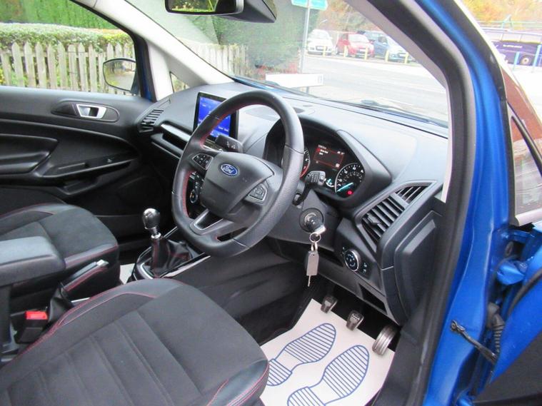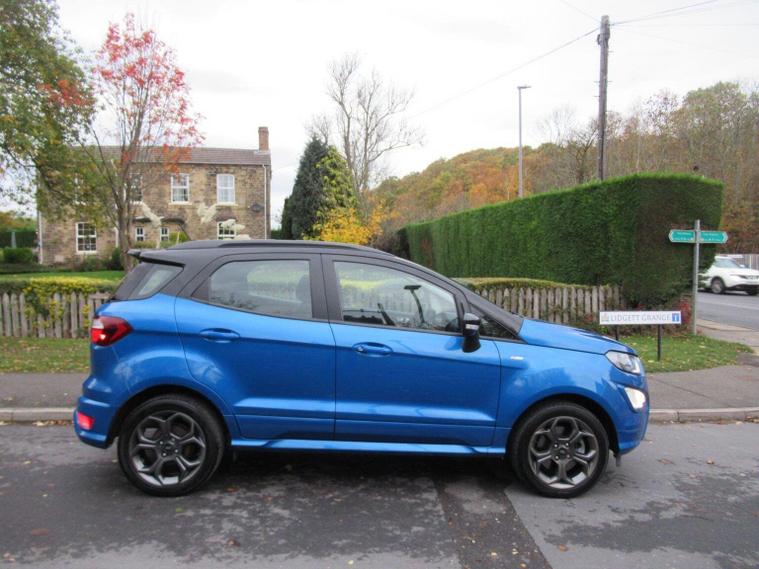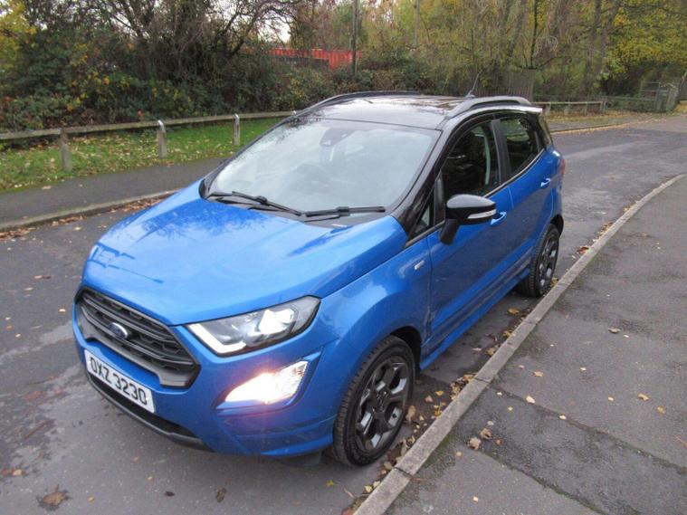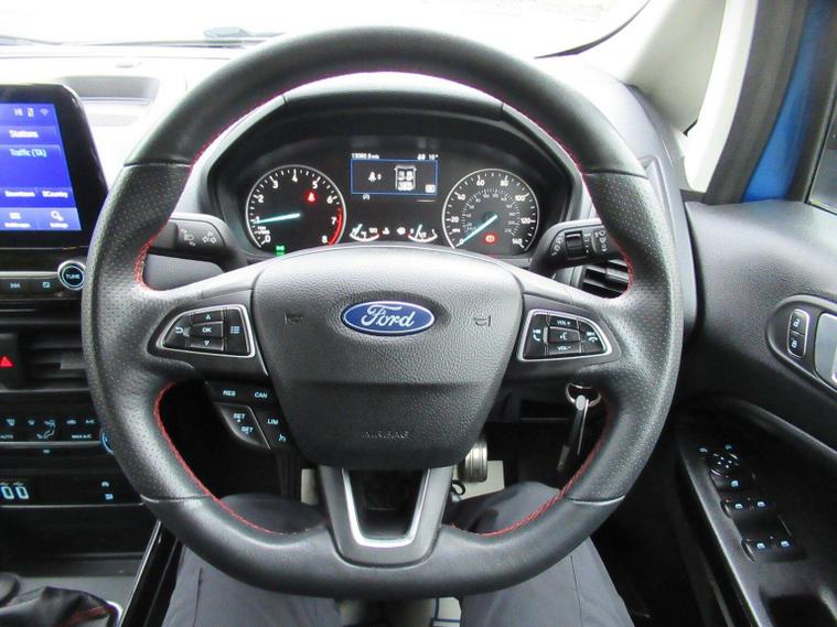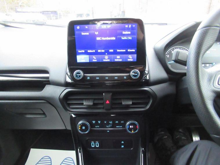 This 2020 Ford EcoSport ST Line offers exceptional value with its remarkably low mileage of just 13060 miles. This Euro 6 compliant 1.0L petrol model comes with a full 12 months MOT and a clear vehicle history check, providing peace of mind for its next owner. Inside, youll find a host of desirable features including Electronic Automatic Temperature Control for effortless climate management, and the Ford SYNC 3 Navigation system complete with an 8 inch touchscreen that seamlessly integrates Android Auto and Apple CarPlay. The Rear View Camera Pack, featuring a rear camera and parking sensors, makes manoeuvring simple, while automatic headlights ensure optimal visibility in all conditions. This particular Ford EcoSport ST Line stands out with its impressive fuel economy, achieving an excellent 48 miles per gallon, which is a significant advantage over many similar vehicles. Its low CO2 emissions also contribute to its appeal, making it a more environmentally conscious choice. This combination of efficient performance, advanced technology, and low running costs makes this EcoSport a compelling option for anyone seeking a stylish and practical compact SUV.
