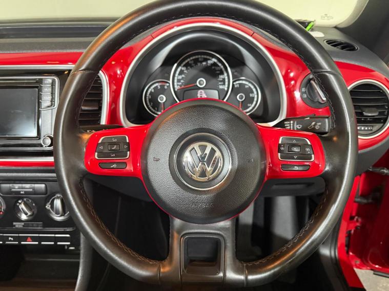 This 2015 Volkswagen Beetle TDI Design offers an exceptional blend of style and efficiency, making it a standout choice. Powered by a robust 2.0 litre diesel engine, this Euro 6 compliant model ensures a cleaner drive. Inside, youll find comfort and convenience with manual air conditioning, alongside seamless connectivity thanks to Bluetooth audio and phone capabilities. The Beetle TDI Design is designed to impress with its impressive fuel economy, achieving a remarkable 64 miles per gallon. This efficiency, combined with its low CO2 emissions and placement in a low insurance group, demonstrates how this vehicle offers a more economical and accessible ownership experience compared to many others in its class.2 FORMER KEEPERS EXCEPTIONAL SERVICE HISTORY 9 SERVICE STAMPS + JUST SERVICED 72K ULEZ FREE FINISHED IN GLEAMING RED COACHWORK CONTRASTING TIXO CLOTH-TITAN BLACK/RED TRIM CLIMATE CONTROL CAR-NET APP CONNECT DASH MOUNTED COMPATIBLE MP3-CD PLAYER COMPOSITION MEDIA SYSTEM BLUETOOTH ELECTRIC FOLDING HOOD FRONT AND REAR PARKING SENSORS (KEYS X 2) AN EXCEPTIONAL EXAMPLE OF THIS MOST SOUGHT AFTER CONVERTIBLE MODEL.THIS VEHICLE CAN BE PRE RESERVED FOR 250 CLICK & COLLECT ALSO HOME DELIVERY AVAILABLE.