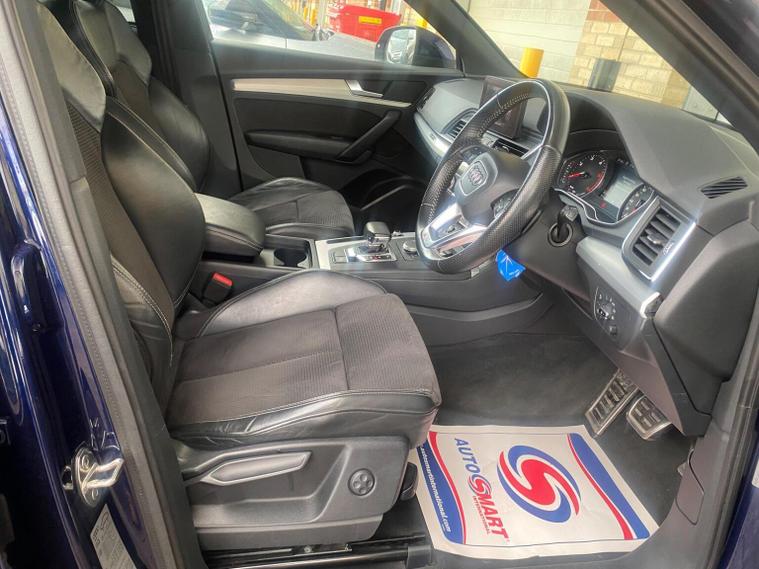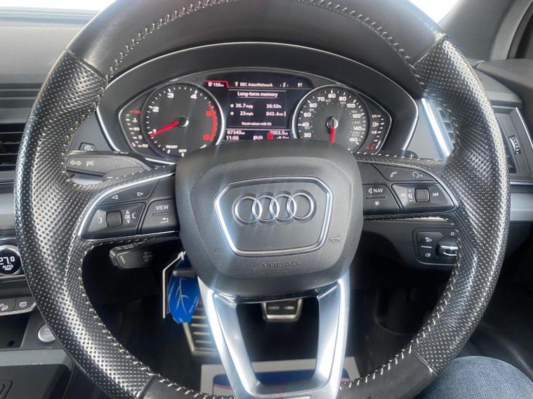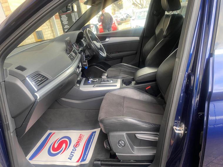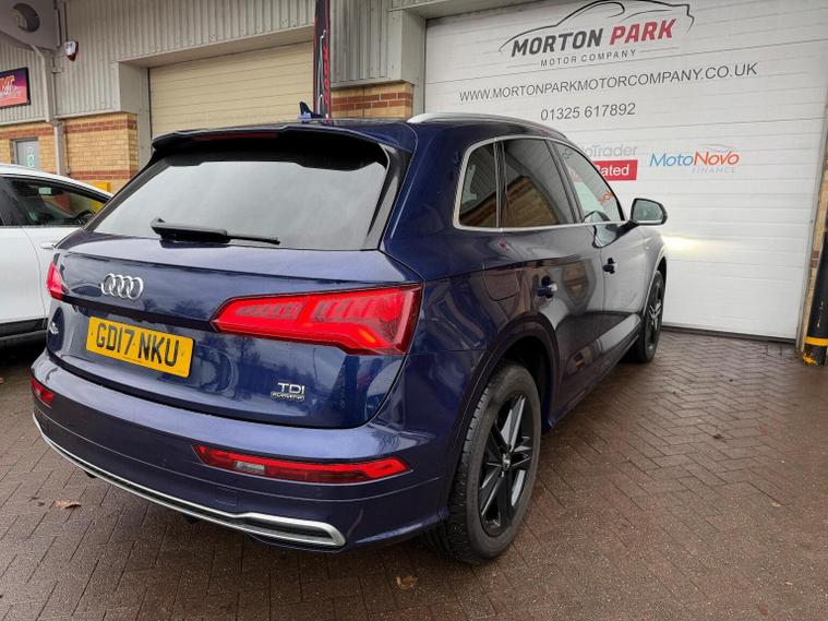 This Audi Q5 TDI S line from 2017 boasts a clear vehicle history, offering you peace of mind. This four wheel drive model features a 2.0 litre diesel engine and meets Euro 6 emission standards. It comes equipped with striking LED headlights and rear lights with dynamic indicators, along with a deluxe three zone climate control system. For added comfort and convenience, youll find heated front seats, and the light and rain sensor ensures automatic headlight activation. Parking is made easier with the Audi Parking System Plus, which includes front and rear sensors. Experience impressive performance with this Q5, accelerating from 0 to 62 miles per hour in just 7.9 seconds. Its fuel economy is a notable highlight, achieving up to 55 miles per gallon, which indicates it is more economical than many similar vehicles. Furthermore, its low CO2 emissions are better than many other cars in its class. This model also offers generous boot space, making it a practical choice for all your needs, and it has a towing weight of 2400 kg.