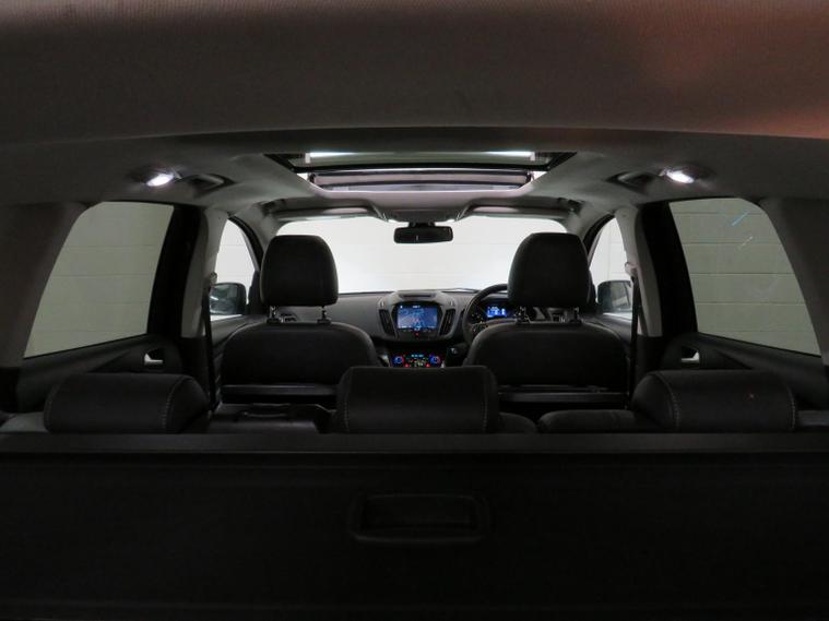 This 2017 Ford Kuga TDCi Titanium presents a remarkable opportunity with its exceptionally low mileage of just 55, 000 miles for its age. This Four Wheel Drive model is powered by an efficient 2.0 litre diesel engine, meeting Euro 6 emission standards. The Titanium trim level ensures a comfortable and convenient driving experience, featuring a power opening panoramic roof that floods the cabin with light, rear parking sensors to aid manoeuvring, and keyless entry for effortless access. Inside, youll appreciate the DEATC dual zone climate control, ensuring personalised comfort for both driver and passengers, while automatic halogen headlights with LED daytime running lights provide enhanced visibility. The Ford Kuga TDCi Titanium stands out with its impressive fuel economy, achieving a highlight of 54 miles per gallon, which indicates its superior efficiency compared to many other vehicles in its class. Furthermore, its low CO2 emissions contribute to a more environmentally conscious drive. These factors, combined with its robust Four Wheel Drive system and the comprehensive Titanium specification, make this 2017 Ford Kuga a compelling choice for those seeking a capable, economical, and well equipped SUV.