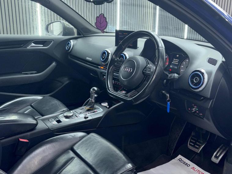 This 2015 Audi S3 TFSI boasts exceptionally low mileage for its age, having covered just 77, 000 miles. This impressive example of the S3 model is equipped with a powerful 2.0 litre petrol engine and a four wheel drive drivetrain, ensuring excellent traction and performance. It meets Euro 6 emission standards, reflecting its modern engineering. Inside, youll find comfort and convenience with Bi-Xenon Plus headlights, dual-zone electronic climate control, and heated front seats. Connectivity is also a breeze thanks to the Bluetooth interface for mobile telephone preparation. The Audi S3 TFSI offers a thrilling driving experience, capable of accelerating from 0 to 62 miles per hour in a mere 4.8 seconds, a testament to its performance capabilities. This rapid acceleration sets it apart from many other vehicles in its class. Furthermore, the generous boot space provides ample practicality for everyday use and longer journeys, making it a versatile choice.