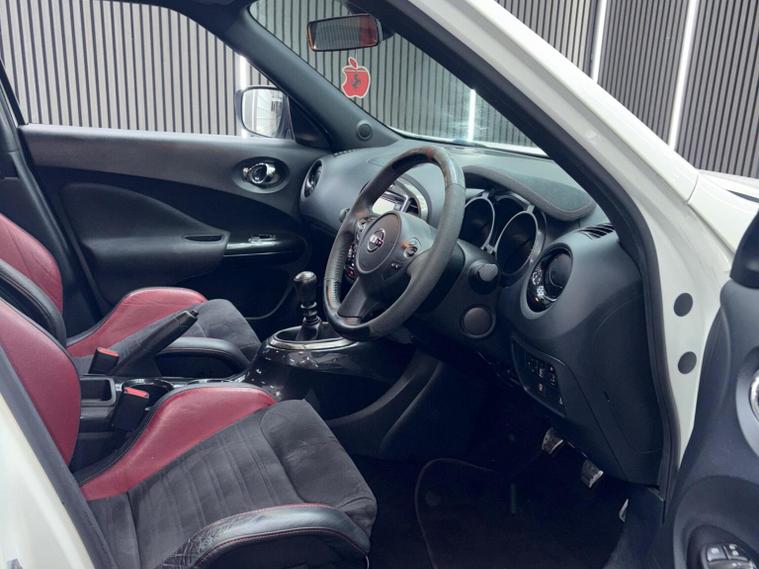 This 2016 Nissan Juke DIG-T Nismo RS boasts a clear vehicle history check, offering you peace of mind. This striking model features a powerful 1.6 litre petrol engine, meeting Euro 6 emissions standards. Inside, youll find luxurious Alcantara and leather Recaro seats in black with distinctive red bolsters and NISMO embroidered logos, complemented by heated front seats for added comfort. The Tech Pack enhances your driving experience with Xenon headlights, a 360 degree camera for effortless parking assistance, and Blind Spot Assistance. Stay connected on the go with seamless Bluetooth integration for your telephone. The NISMO RS trim level signifies a performance oriented design, and this Juke is no exception, achieving an impressive 0 to 62 miles per hour in just 7.0 seconds. These highlights, including its rapid acceleration and advanced technology, demonstrate how this Nissan Juke stands out from other vehicles in its class. Furthermore, its low insurance group rating makes it an economical choice for many drivers. This vehicle also comes with a Nissan Care Warranty, ensuring continued support.