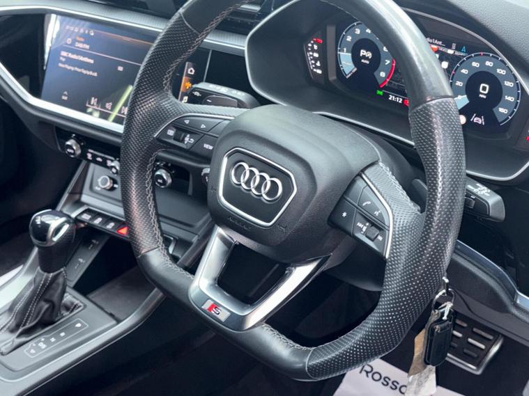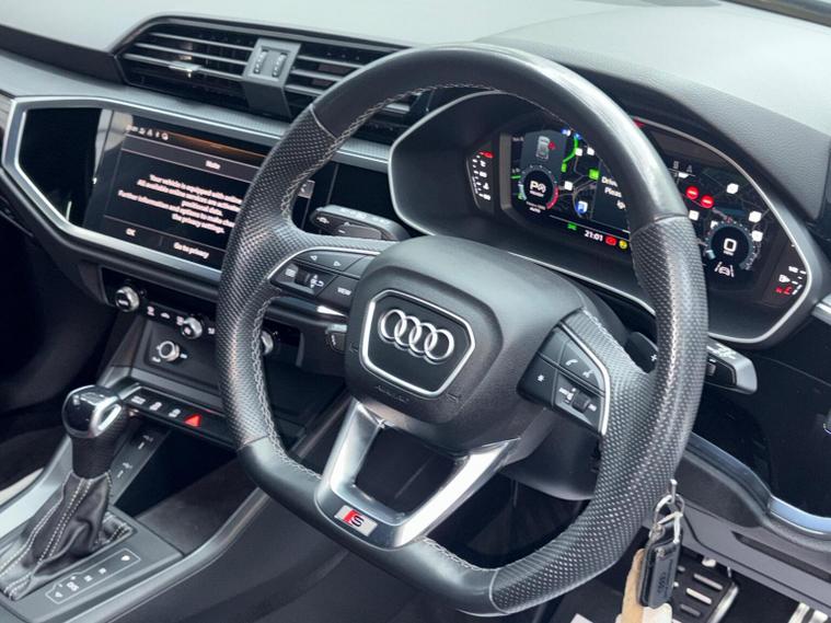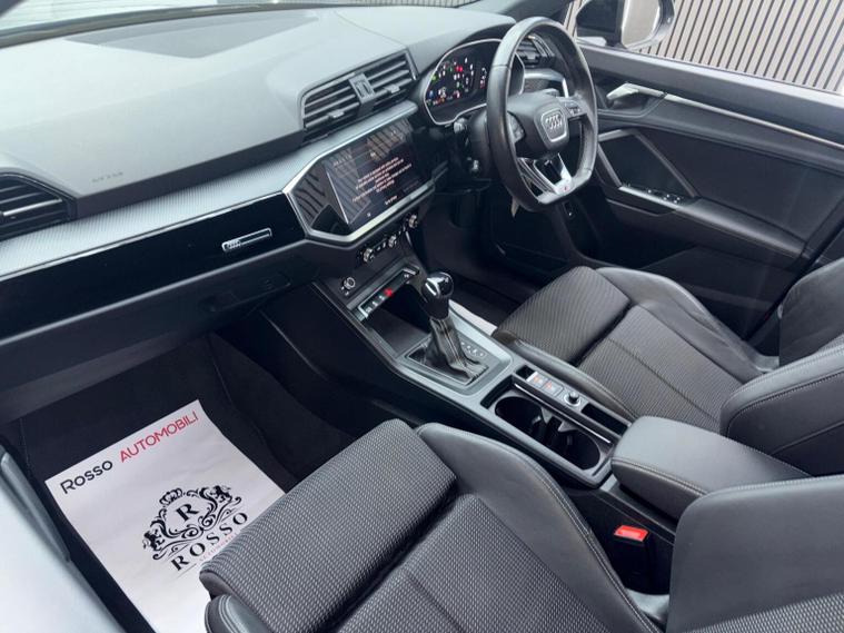 This 2023 Audi Q3 TFSI Black Edition offers exceptional value with its remarkably low mileage of just 19, 500 miles. This Euro 6 compliant 1.5 litre petrol engine is paired with the stylish Black Edition trim, providing a sophisticated driving experience. Connectivity is seamless thanks to the Bluetooth Interface and the Audi Smartphone Interface, which includes Wireless Apple CarPlay and Android Auto. For convenience and safety, rear parking sensors are fitted, and the light and rain sensor automatically activates the LED headlights with their distinctive LED daytime running lights. The Q3 TFSI Black Edition boasts a generous boot space, making it a practical choice for families and adventurers alike. Its performance is equally impressive, with an acceleration of 0-62mph achieved in a brisk 9.4 seconds. These features, combined with its low mileage, demonstrate how this Audi Q3 stands out from other vehicles in its class, offering a compelling blend of style, technology, and practicality.