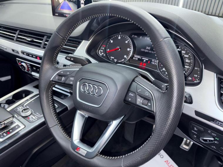 This Audi Q7 TDI V6 S line from 2016 boasts a remarkable provenance, having had only two owners. This spacious seven seater SUV is equipped with a powerful 3.0 litre diesel engine and a four wheel drive system, ensuring excellent performance and capability. As a Euro 6 compliant vehicle, it meets stringent emission standards. The S line trim enhances its sporty appeal, and it comes fitted with the desirable Tour Pack, featuring adaptive cruise control, and a panoramic glass sunroof for an airy cabin. Practicality is further boosted by running boards, a 360 degree camera system within the Parking Assistance Pack, and the convenience of wireless phone charging via the Audi Phone Box. With a towing weight of 2800 kg, it is well suited for a variety of needs. The highlights of this Q7 demonstrate its superior offering compared to other vehicles in its class. Its impressive acceleration, reaching 0 to 60mph in just 6.3 seconds, showcases the dynamic capabilities of the TDI V6 engine. Furthermore, its placement in a low insurance group makes it an economical choice for many drivers. These factors, combined with its comprehensive feature set and excellent provenance, make this 2016 Audi Q7 a compelling proposition for those seeking a premium, capable, and well maintained SUV.